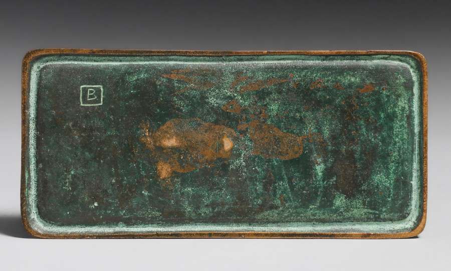 Rare Jarvie Bronze Pen Tray c1905. Unsigned except for foundry mark. Excellent original patina. 8.25" x 3.75" SOLD