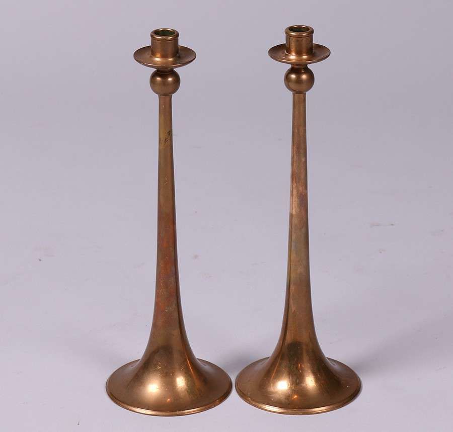 - Tall Jarvie-Style Prairie School Brass Candlesticks c1910