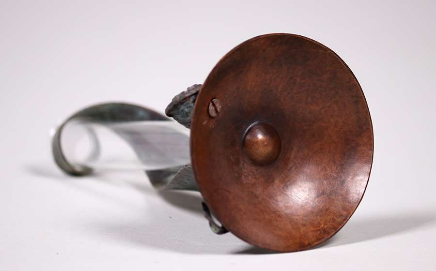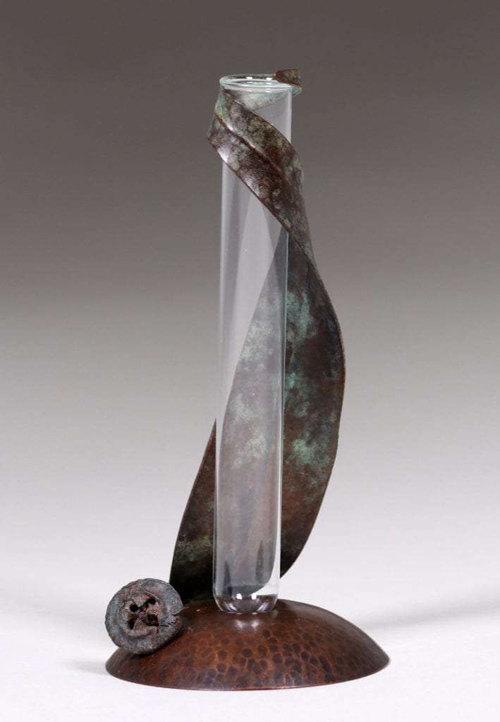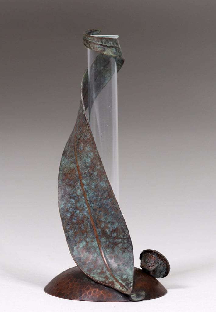- Jauchen's Hammered Copper Eucalyptus Bud Vase c1920