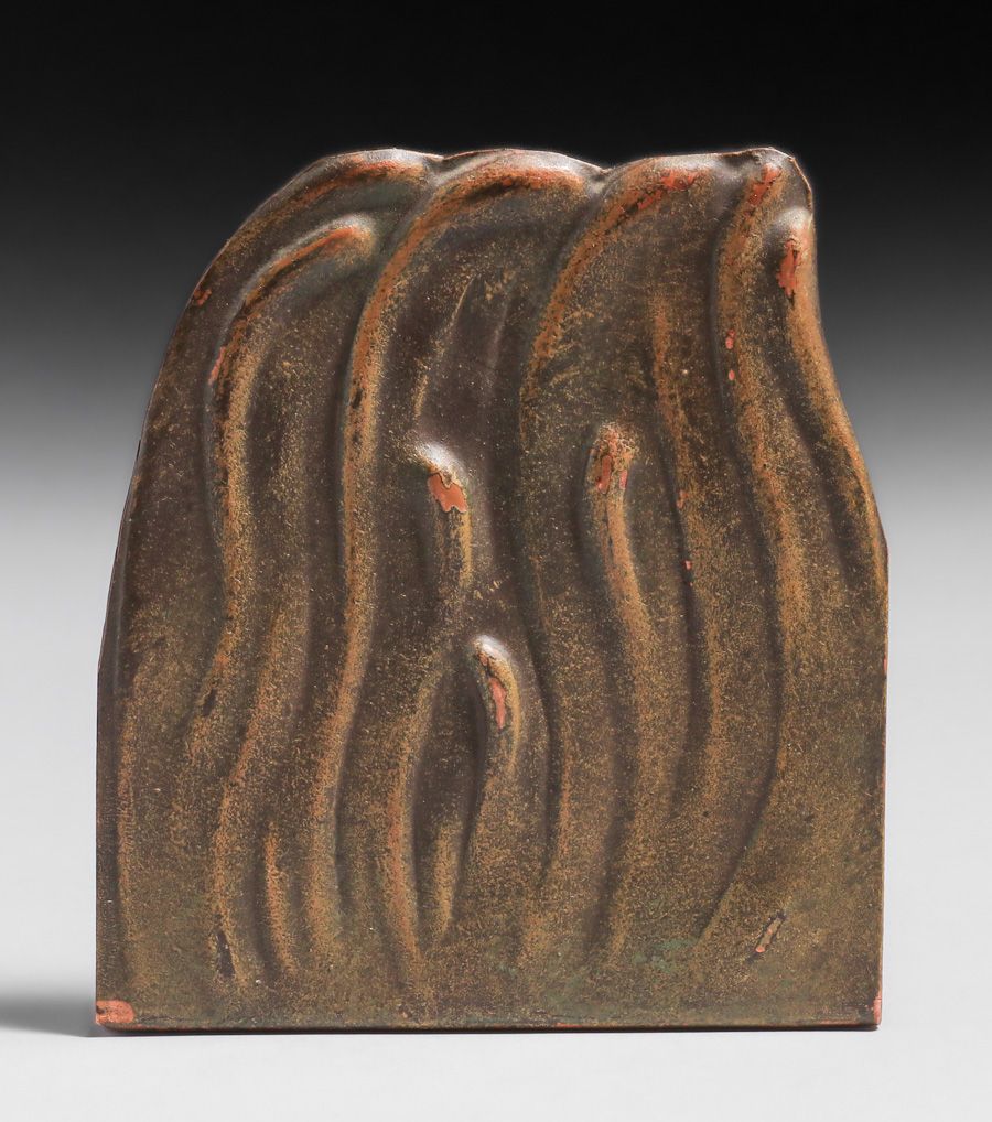 Jauchens Olde Copper Shop – San Francisco Hammered Copper Eucalyptus Form Bookends c1915. Rare example of Jauchen’s Eucalyptus work in repousse. Signed. Excellent original patina. 5.75"h x 5"w SOLD