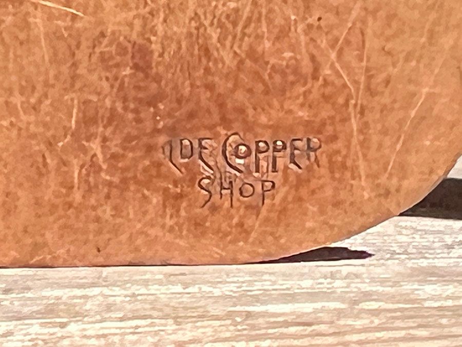 - Jauchens Olde Copper Shop – San Francisco Hammered Copper Eucalyptus Form Bookends c1915