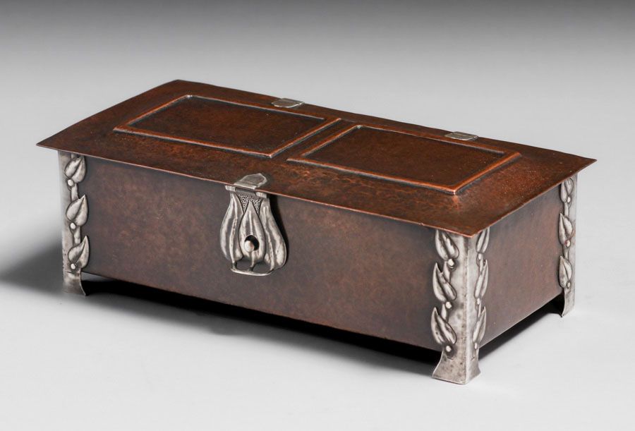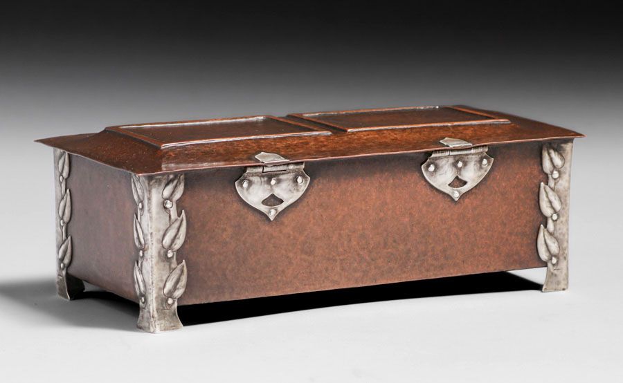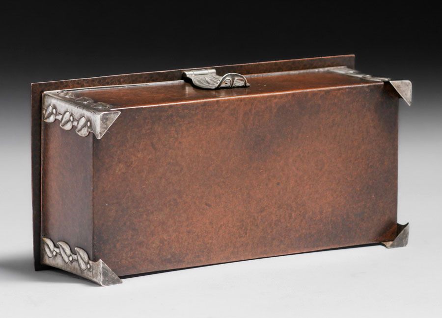 - John Sidney Burton Hammered Copper & Silver Box East Aurora, NY c1914-1915