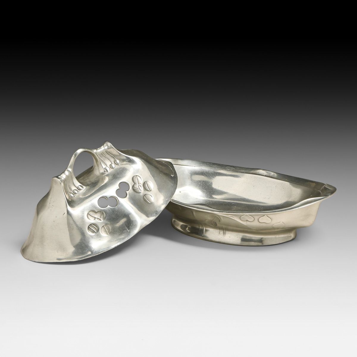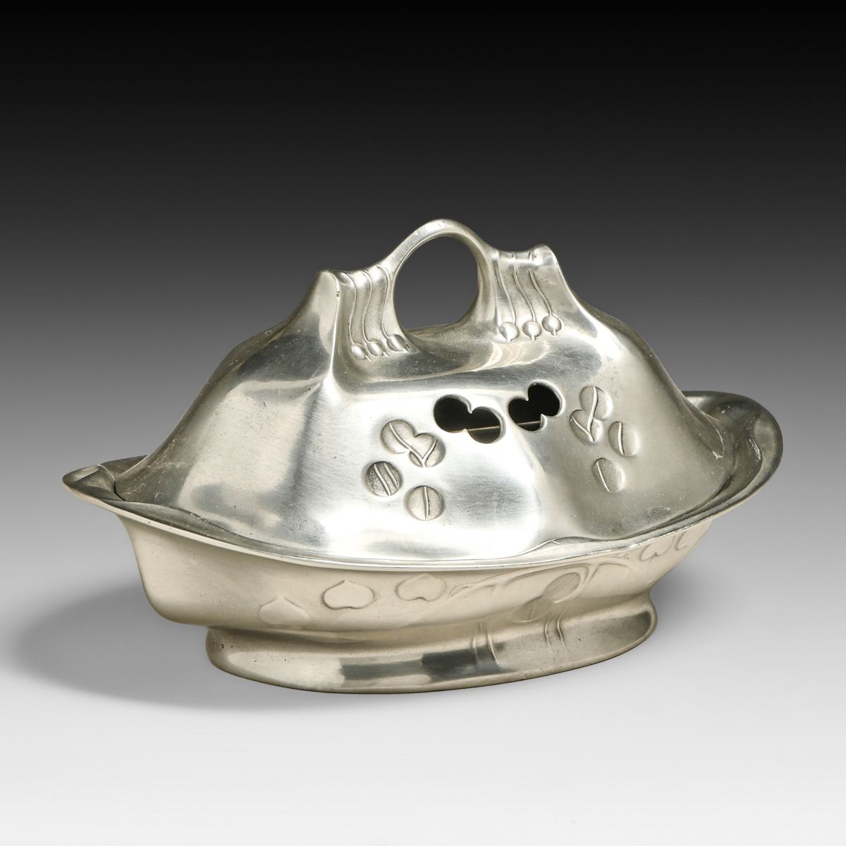 - Kayserzinn - German Art Nouveau Pewter Covered Soap Dish c1905