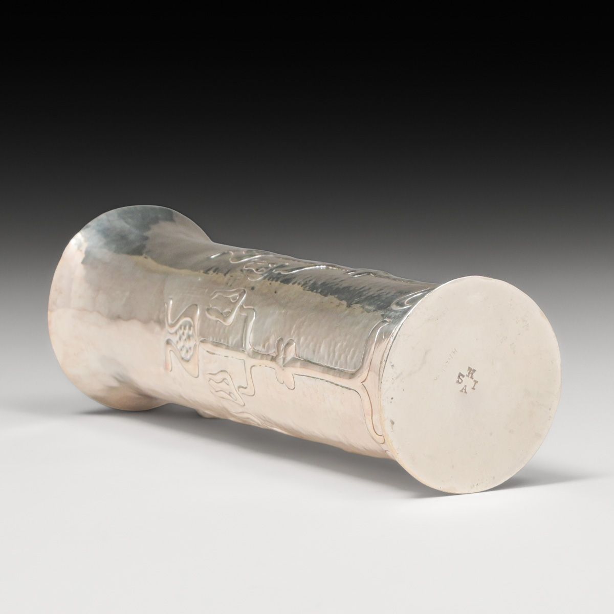 Keswick School of Industrial Art Hammered Copper Silver-Plated Vase c1900. Signed. Excellent condition. 6"h x 2"d