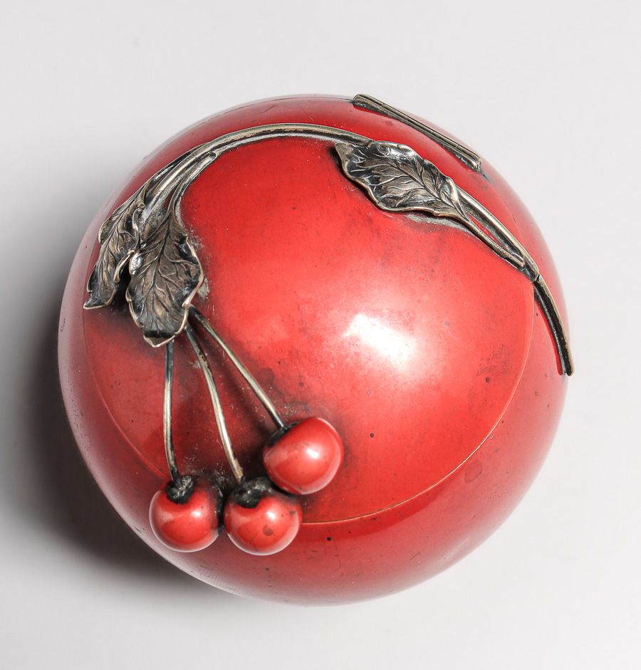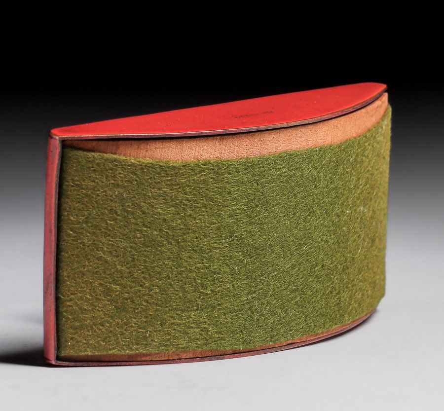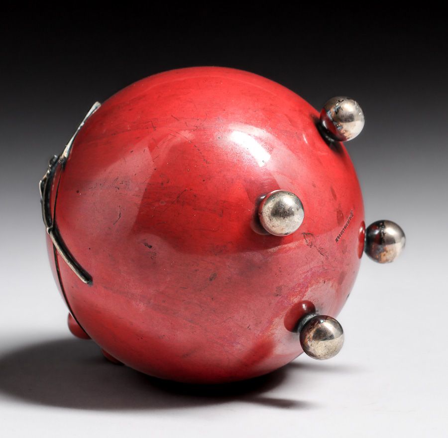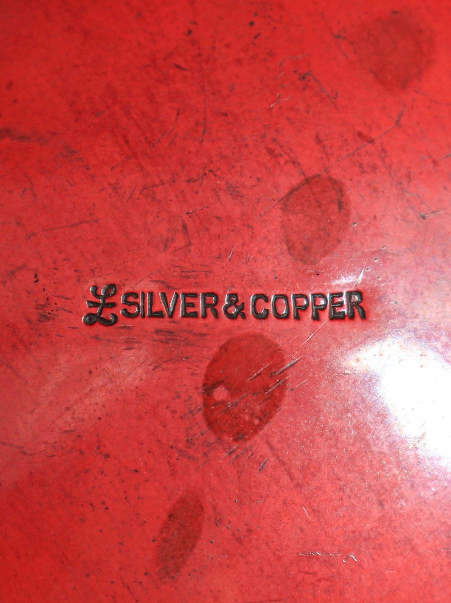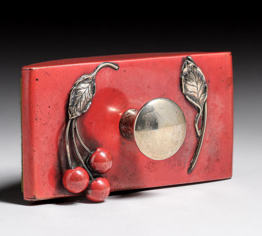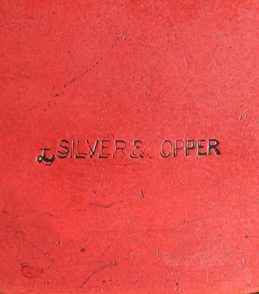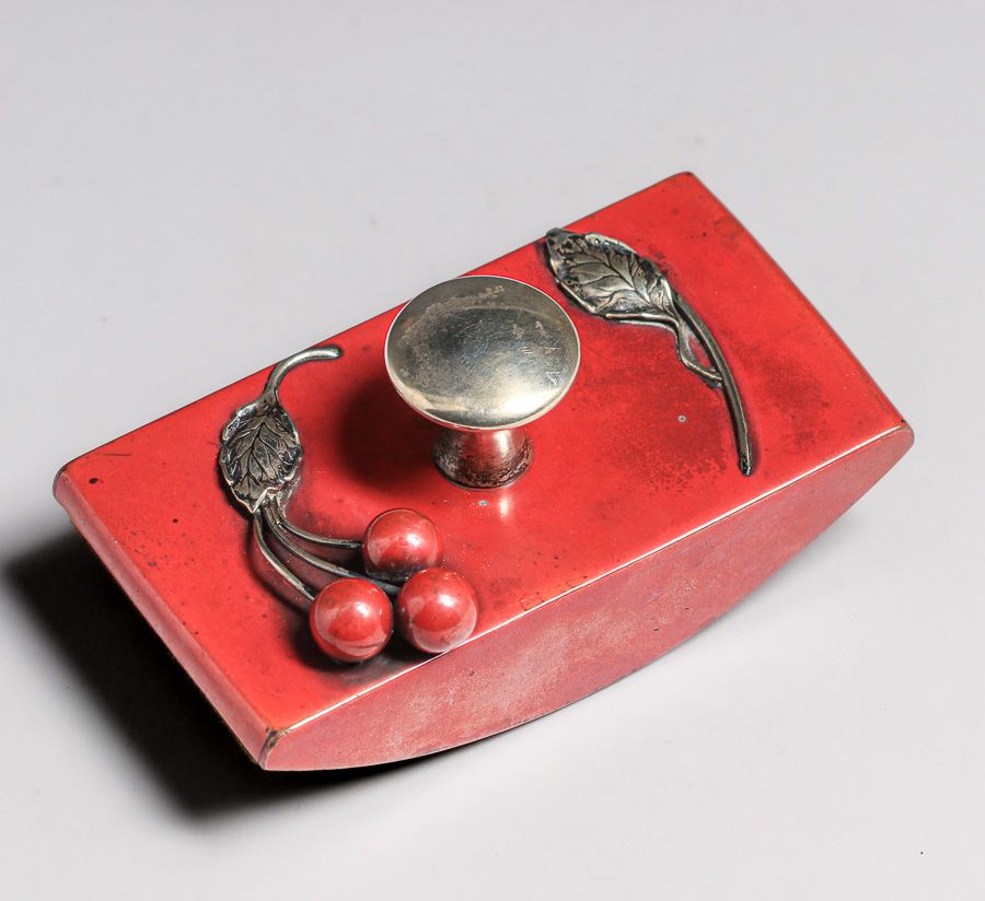 La Pierre Mfg. Co. Copper & Silver Inkwell & Rolling Blotter c1900. La Pierre Mfg. Co. was located in New York and Newark, NJ. Signed. Fantastic original red patina. Rolling blotter measures 5″w x 2.75″ x 2.25″h SOLD