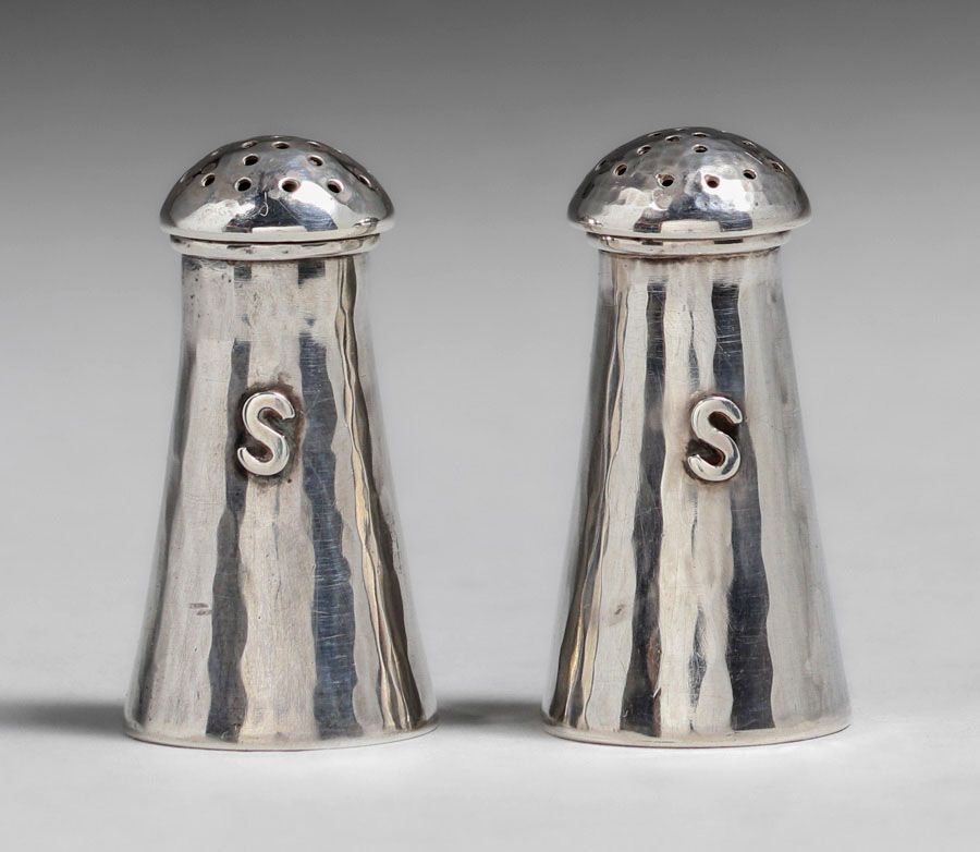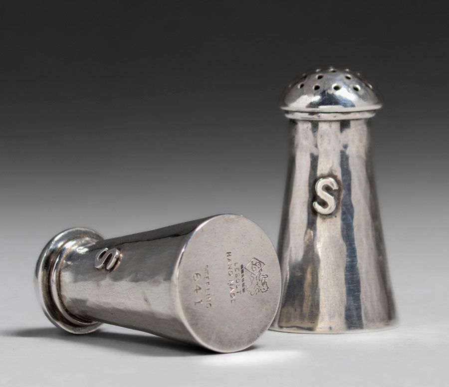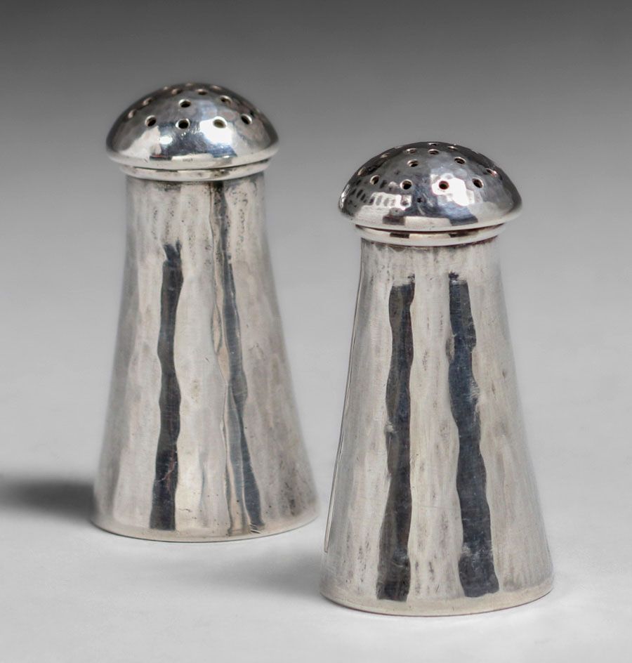 - Lebolt - Chicago Hammered Sterling Silver Salt Shakers c1910s