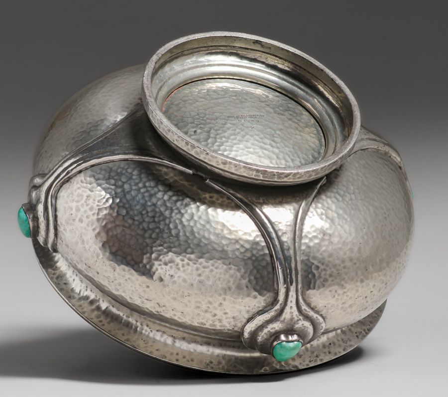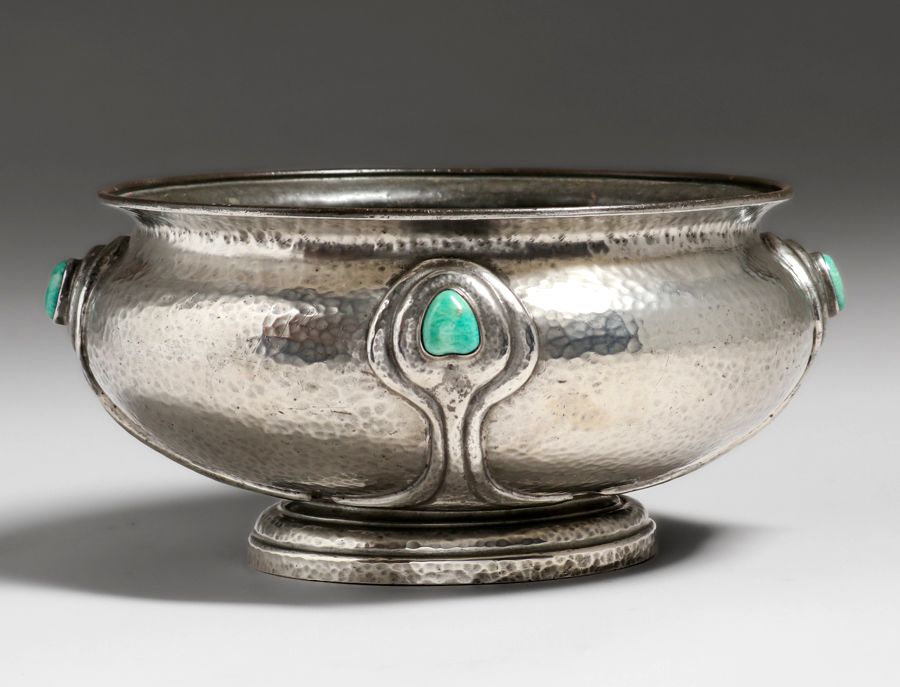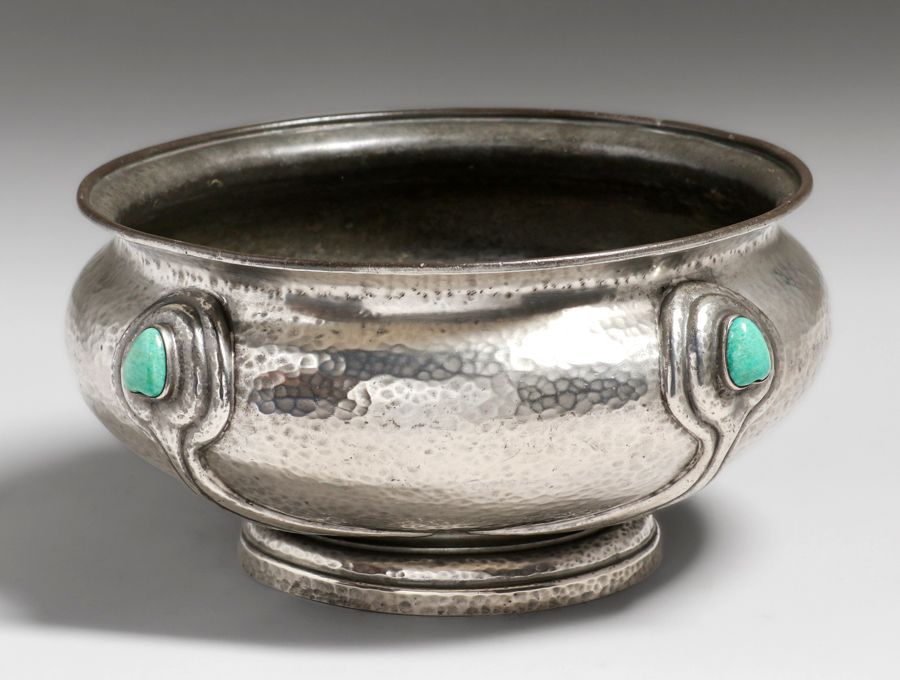 - Liberty & Co Hammered Pewter & Ruskin Enamel Fruit Bowl c1900s