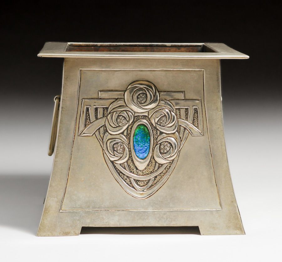 - Margaret Gilmour – Glasgow Hammered Copper Silver-Plated & Enamel Mackintosh Rose Jardiniere c1900s