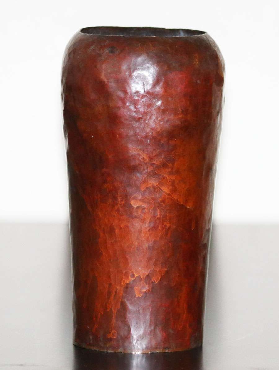 Michael Adams - Aurora Studios hammered copper "warty" experimental vase. This is a test vase - not a finished vase, but shows a beautiful example of Michael Adams's "warty" technique. Signed and dated 2010. 6.25"h x 4.5"d SOLD