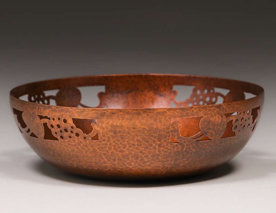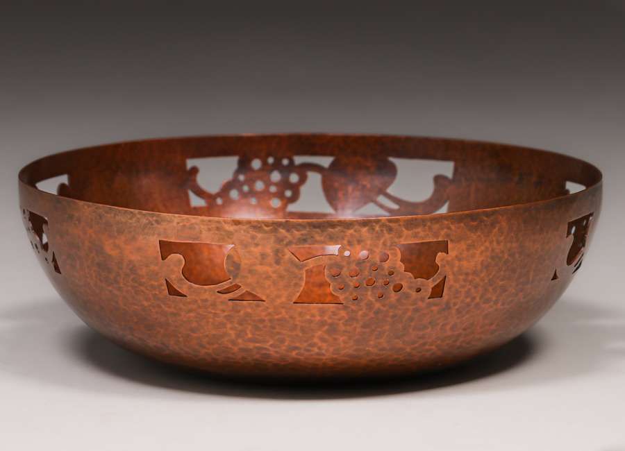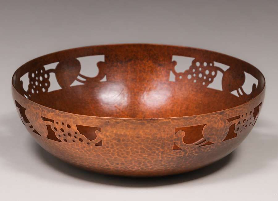 - Minneapolis Handicraft Guild Hammered Copper Cutout Bowl c1910