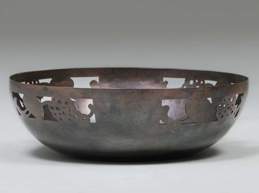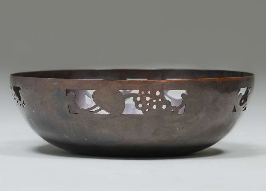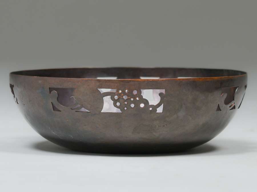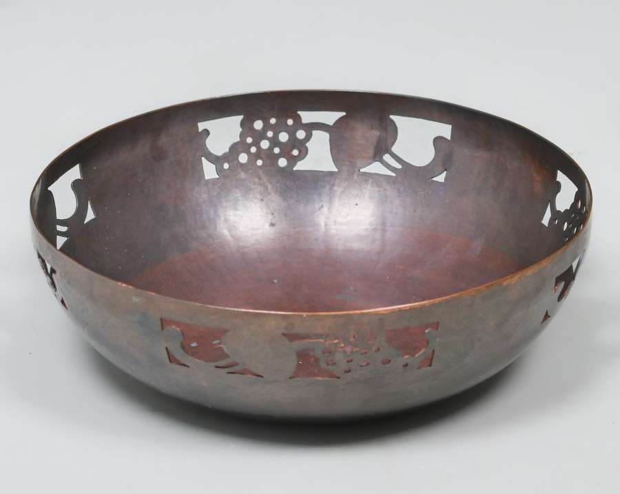 - Minneapolis Handicraft Guild Hammered Copper Cutout Bowl c1910