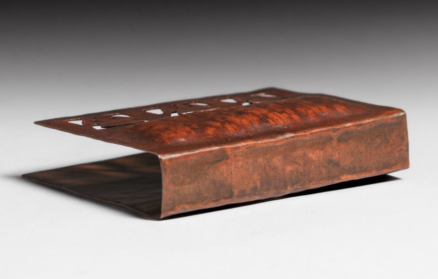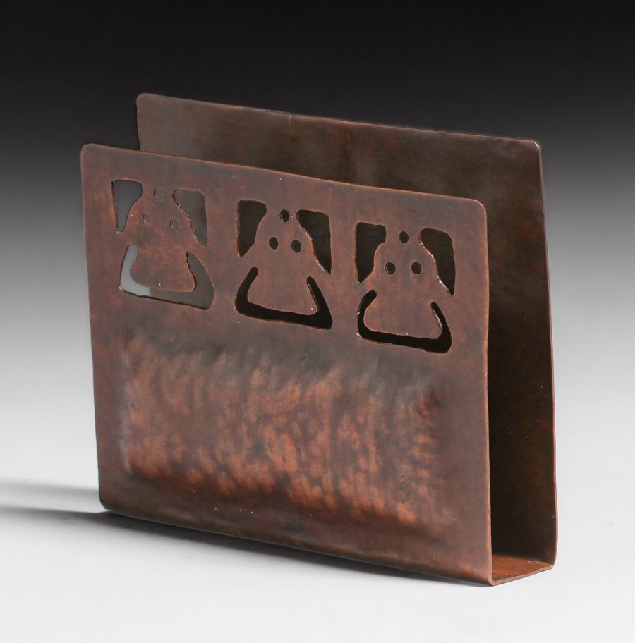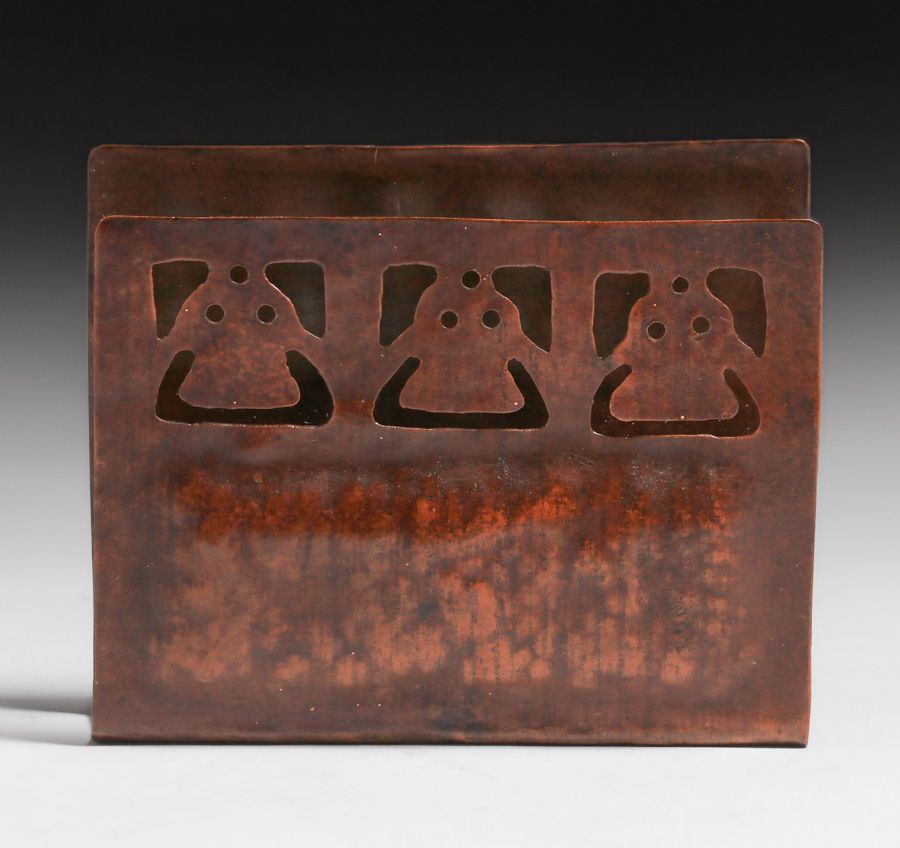 - Minneapolis Handicraft Guild Hammered Copper Cutout Letter Rack c1910