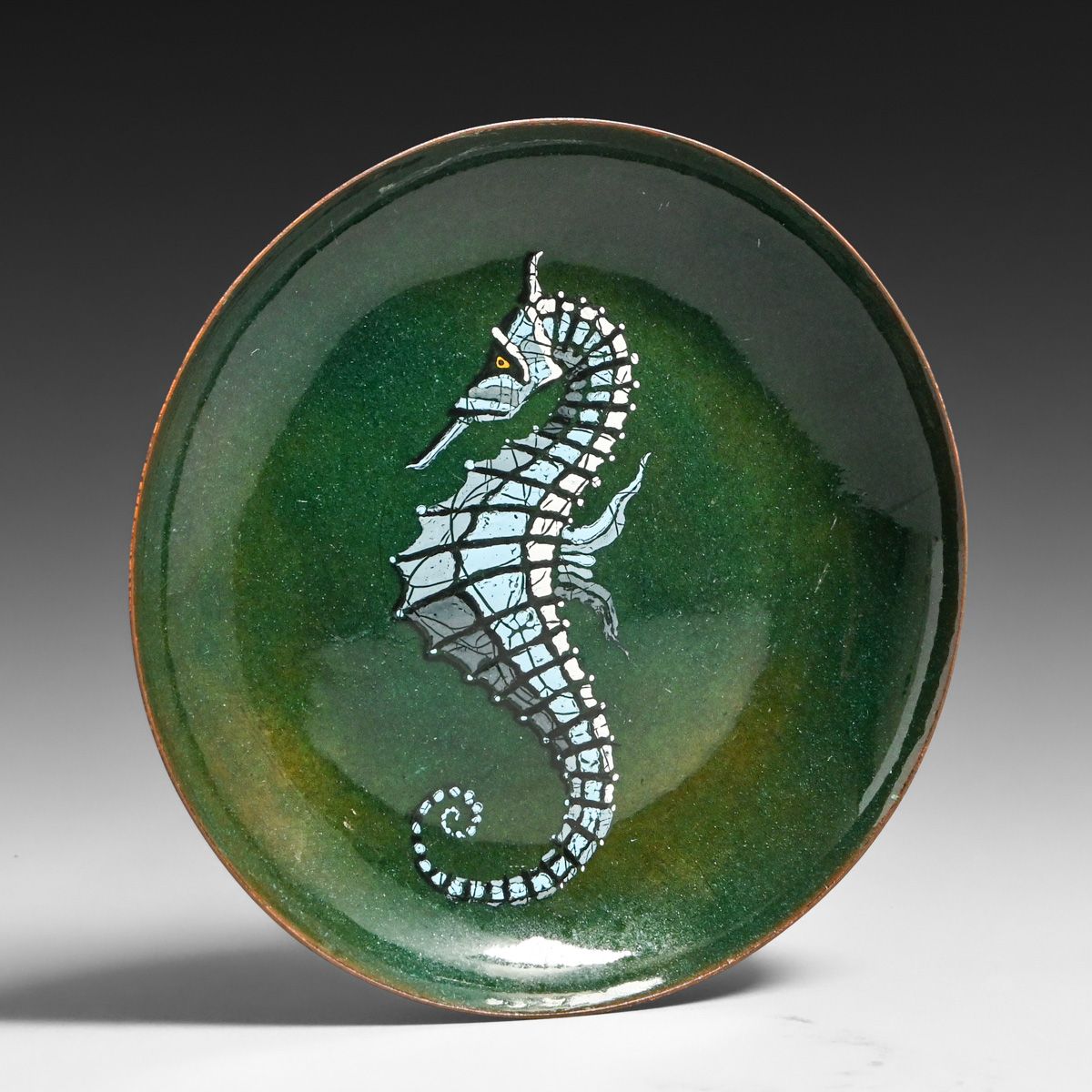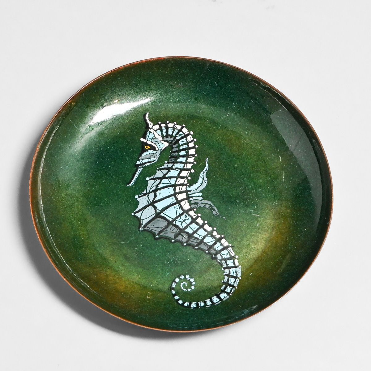 - Nekrasoff Hammered Copper & Enamel Seahorse Tray c1940s