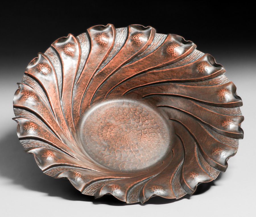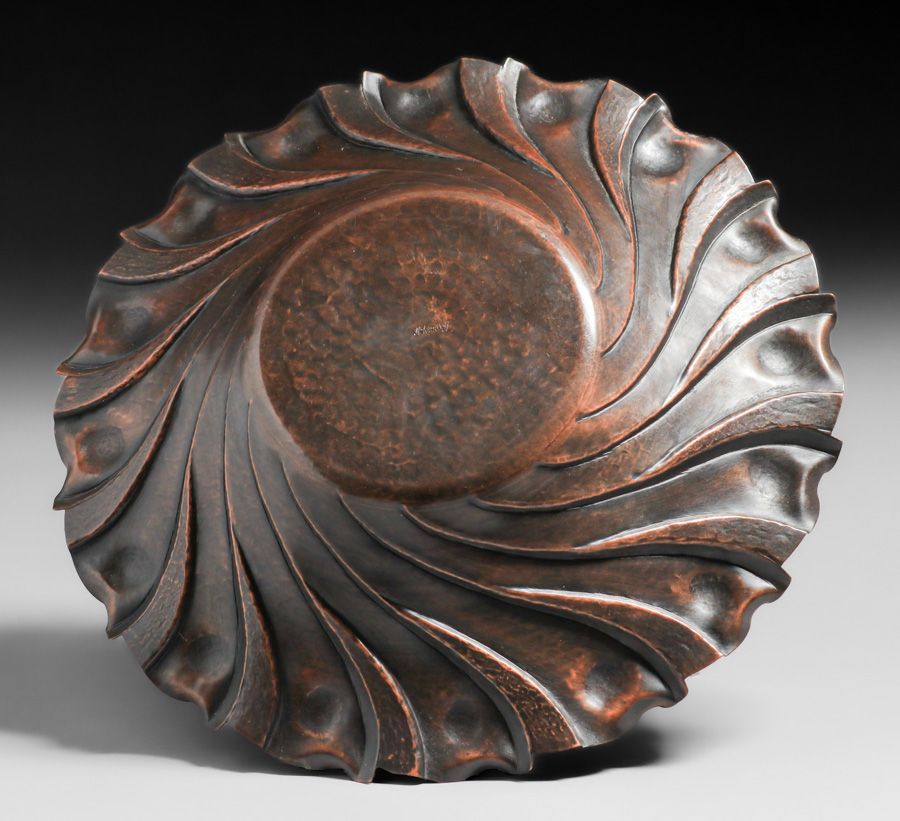 - Nekrasoff Hammered Copper Spiral Repousse Bowl c1940s