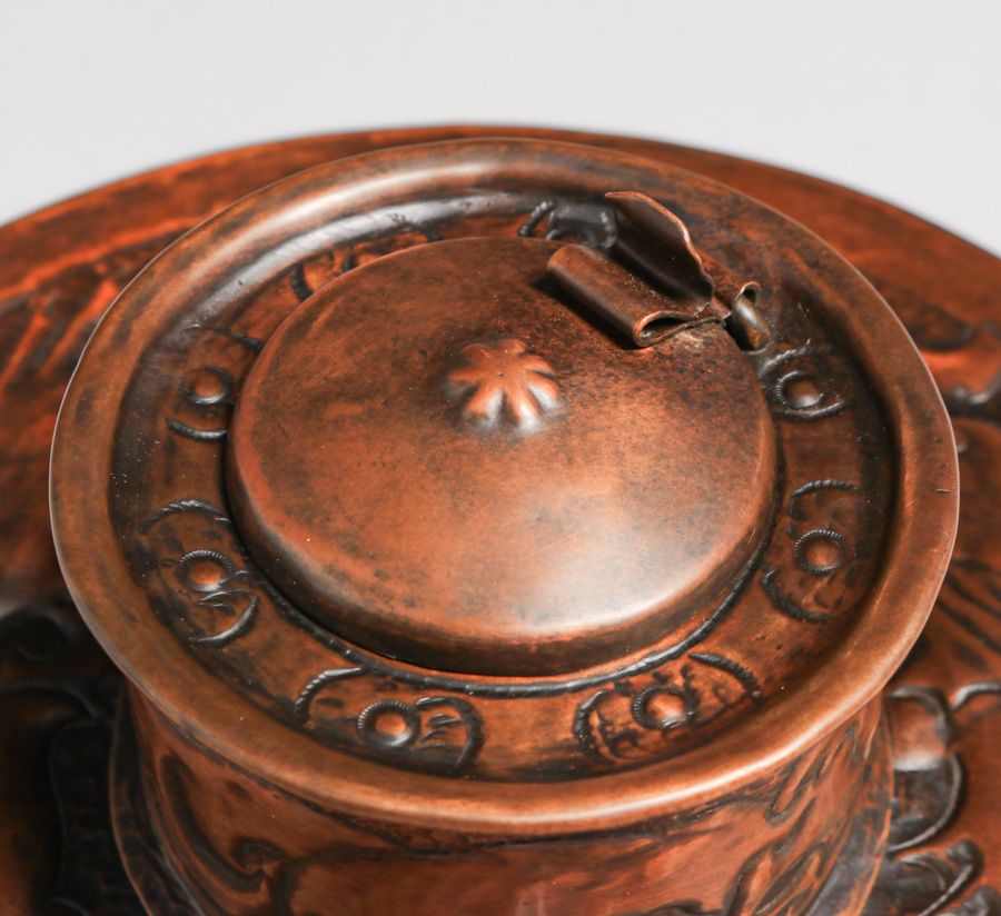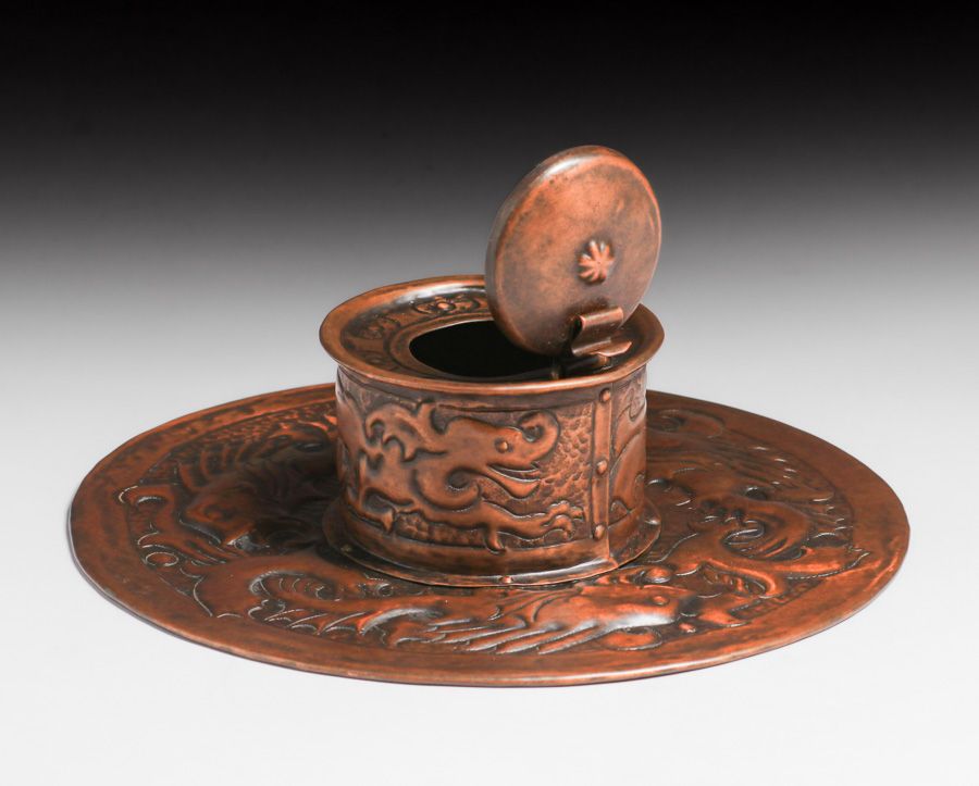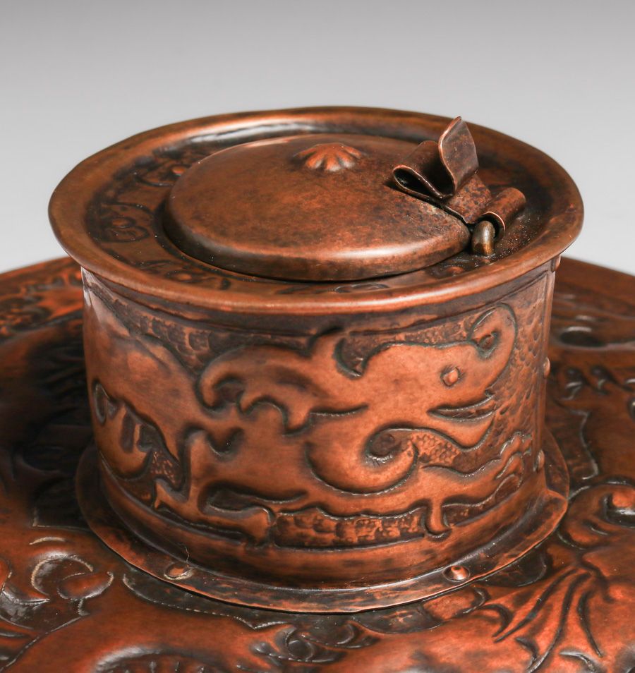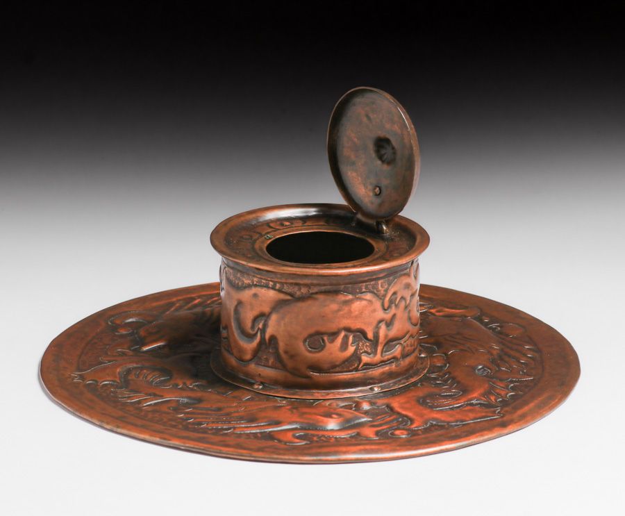 - Newlyn Hammered Copper Repousse Fish Inkwell c1900s