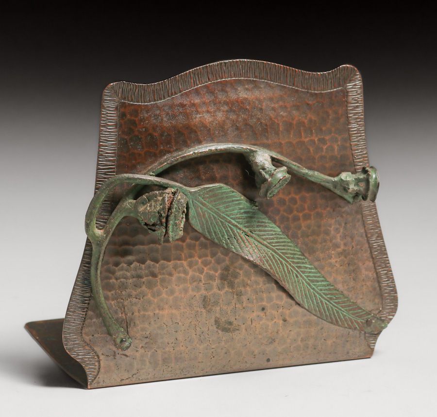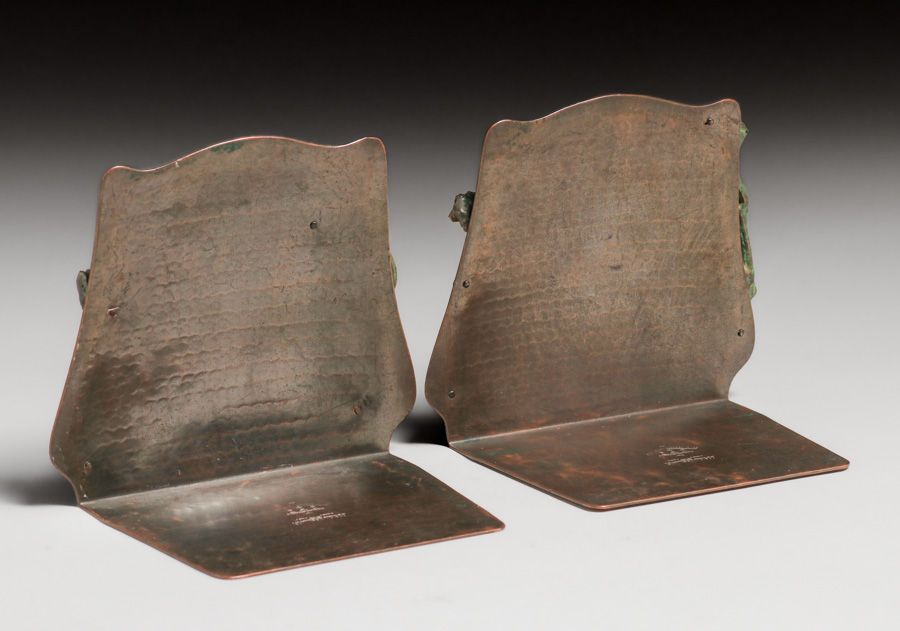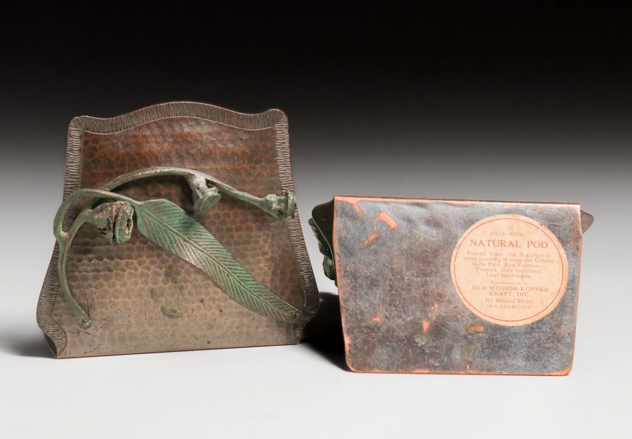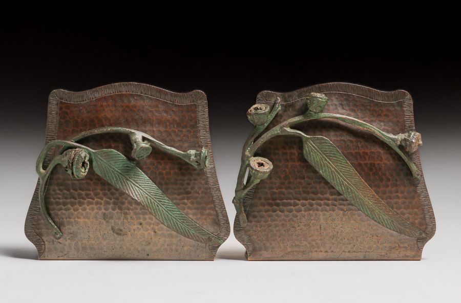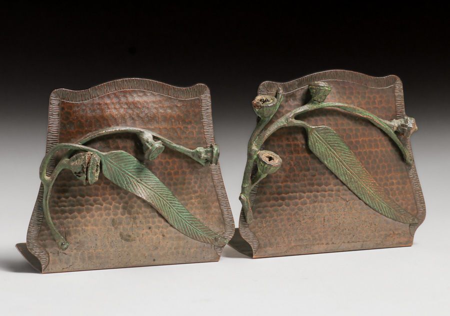- Old Mission Kopper Kraft – Fred Brosi San Francisco Hammered Copper Eucalyptus Bookends c1922-1925