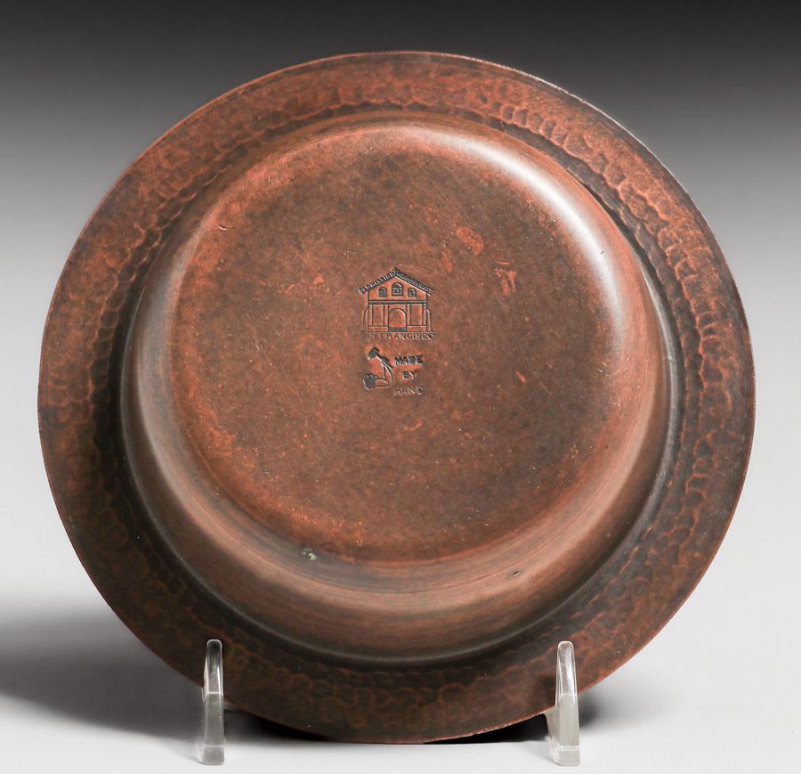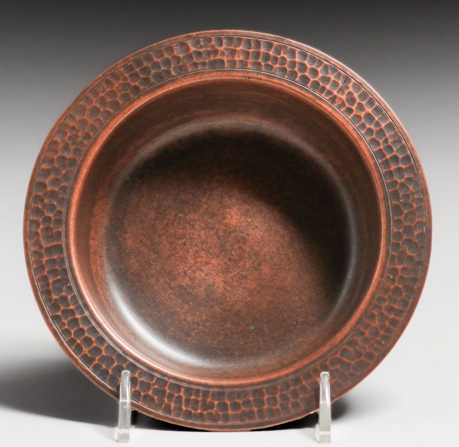 Old Mission Kopper Kraft Hammered Copper Bowl c1922-1925. Signed. Excellent new patina. 5.5"d x 1.25"h SOLD
