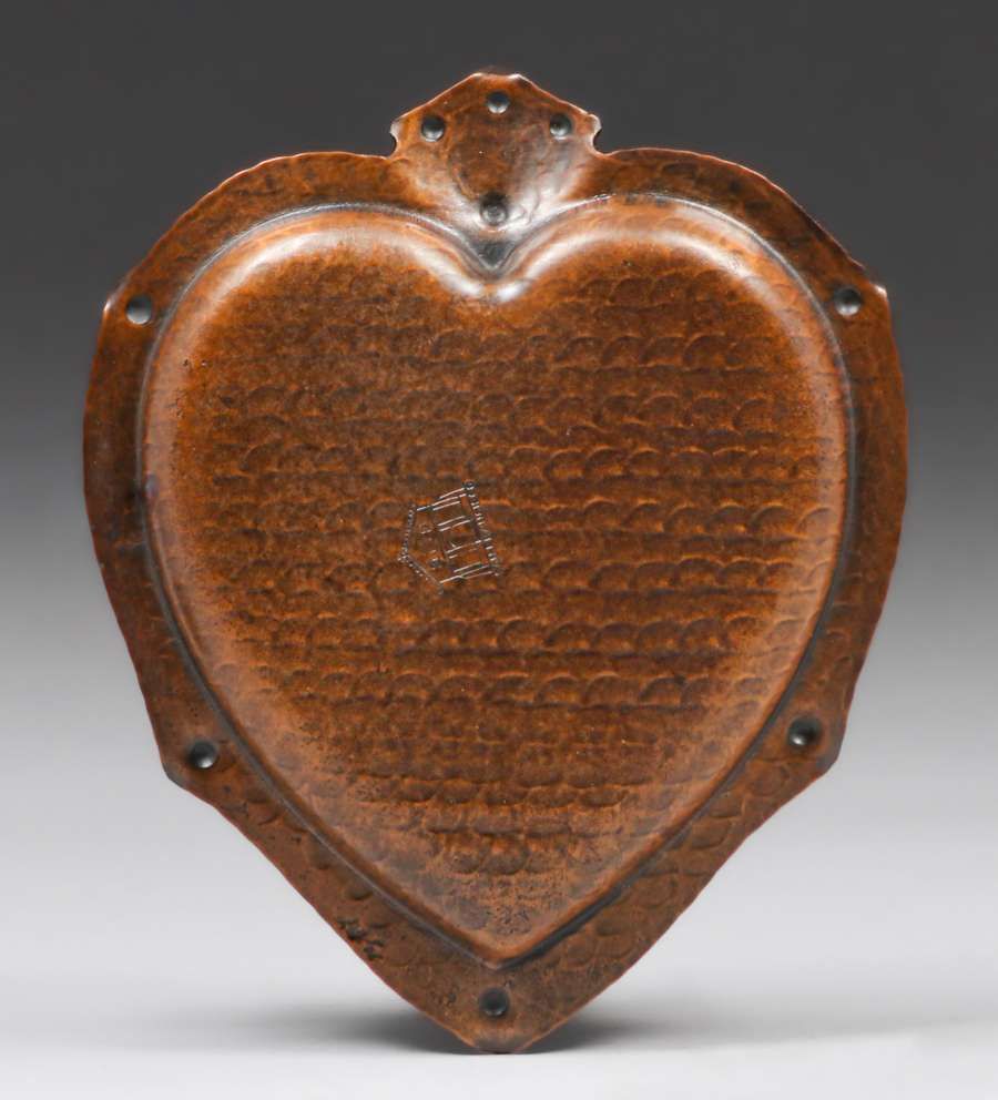 Old Mission Kopper Kraft Hammered Copper Heart-Shaped Tray c1922-1925. Signed. Excellent new patina. 6" x 5" SOLD