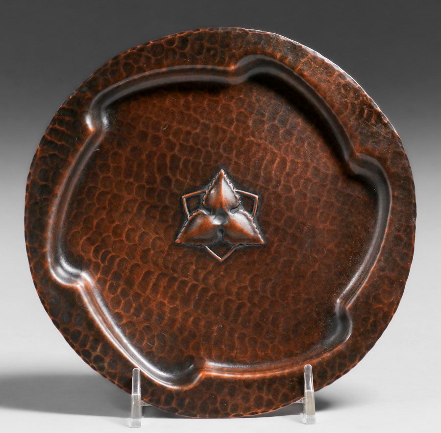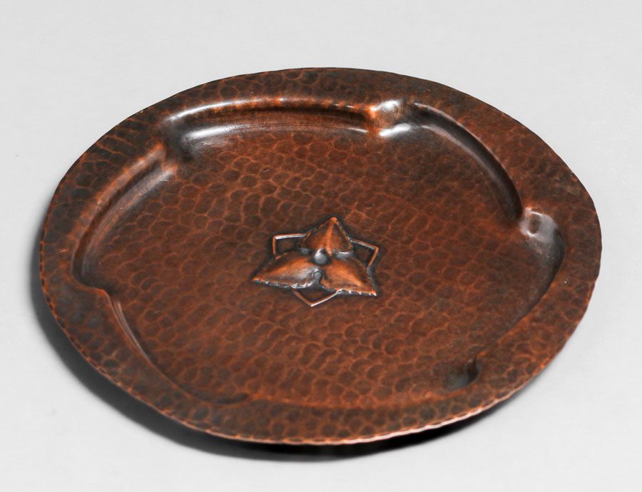 Old Mission Kopper Kraft Hammered Copper Six-Sided Tray c1922-1925. Signed. Excellent new patina. 6"d SOLD