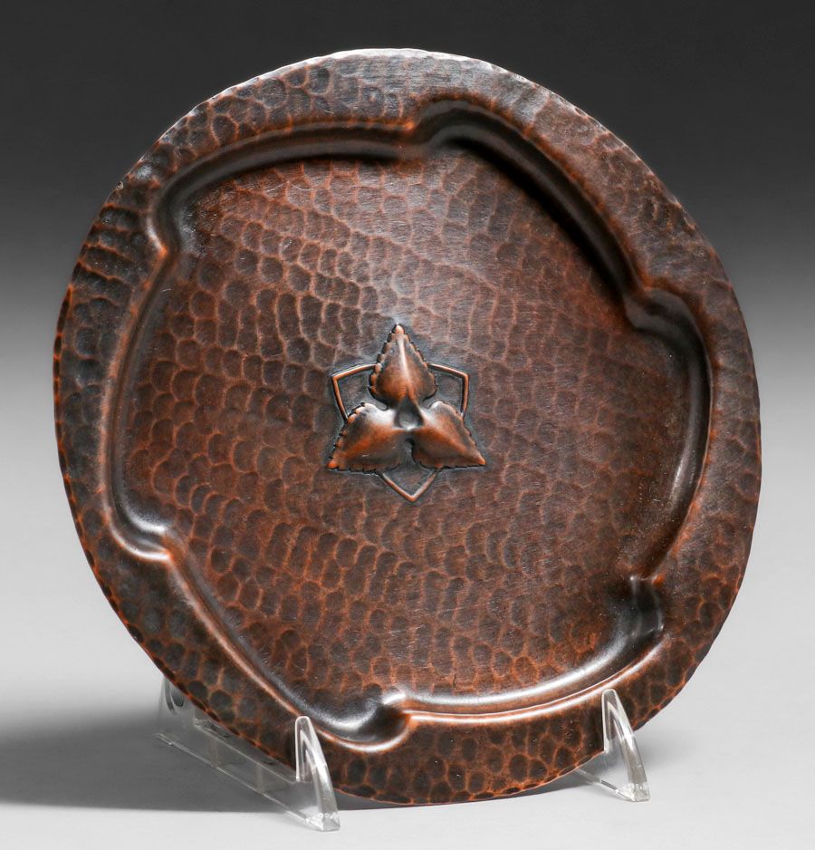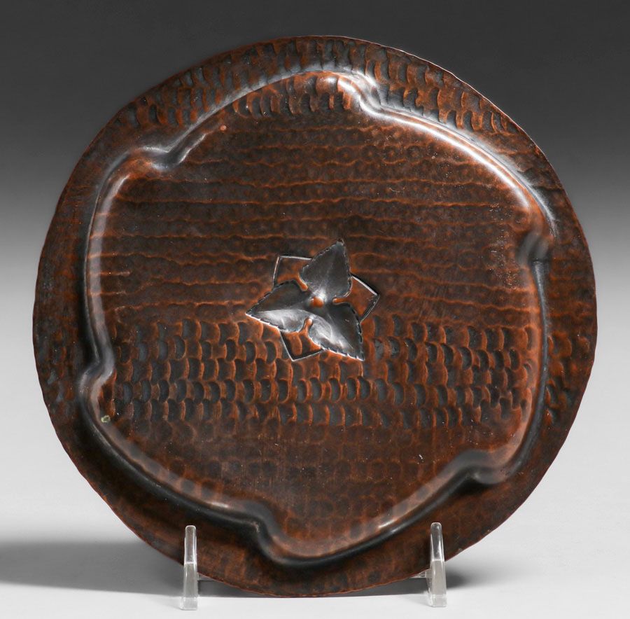 - Old Mission Kopper Kraft Hammered Copper Six-Sided Tray c1922-1925