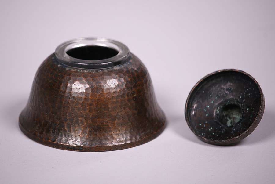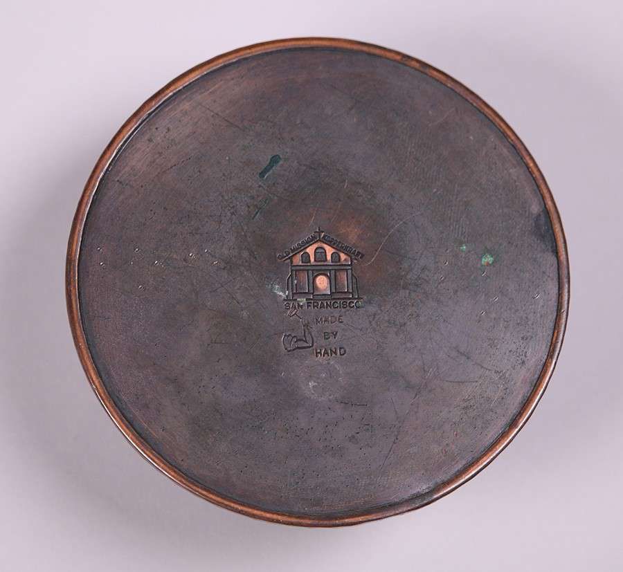 Old Mission Kopper Kraft Inkwell. Signed. Original patina. 3.5"d x 2.75"h SOLD