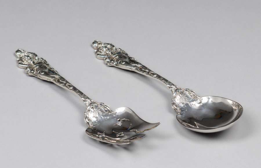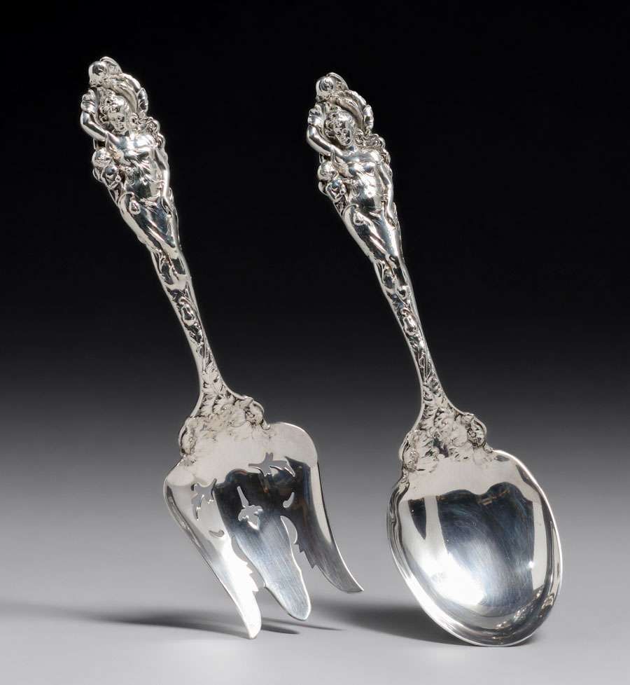 - Reed & Barton Art Nouveau "Love Disarmed" Salad Set c1900