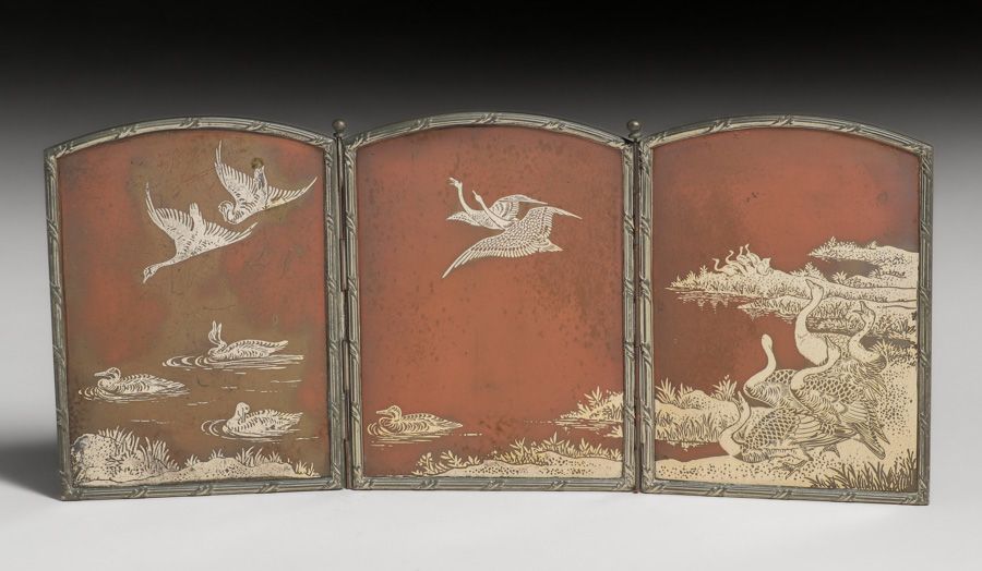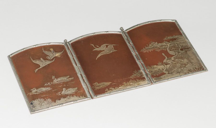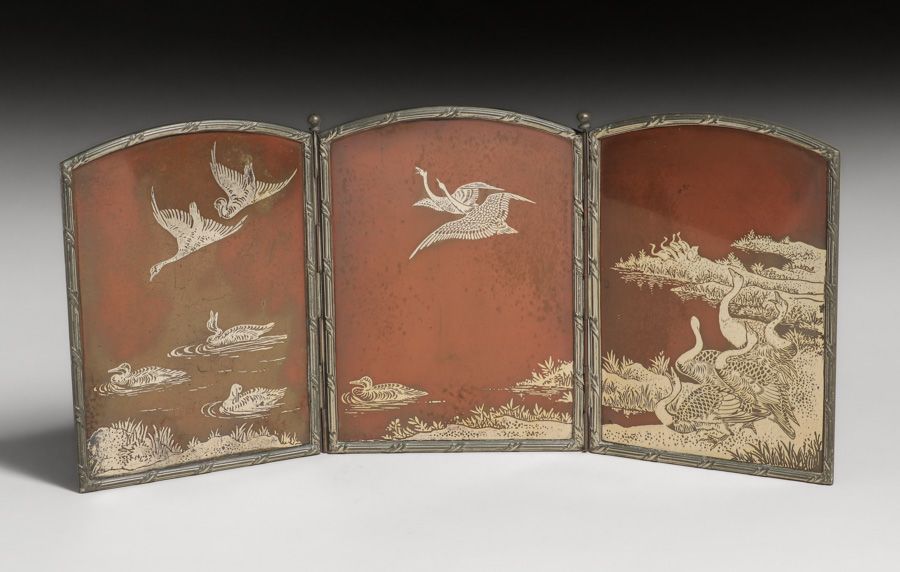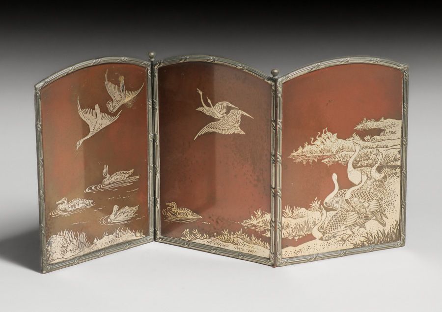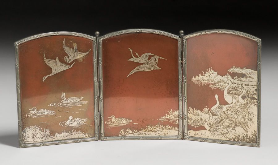 - Reed & Barton Copper & Silver Three-Panel Tea Screen c1910