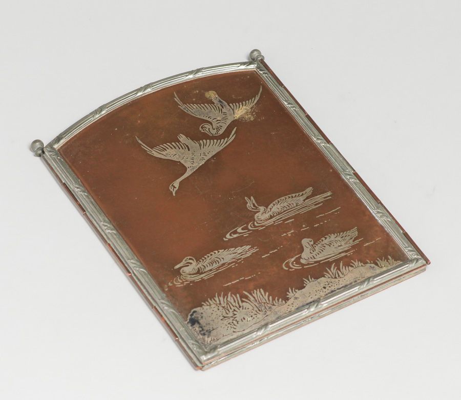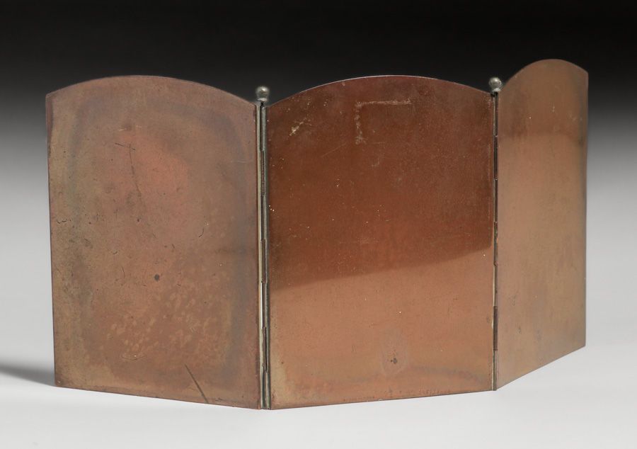 Reed & Barton Copper & Silver Three-Panel Tea Screen c1910. Signed. Excellent original patina. 7"h x 15"w. Each panel 5"w SOLD