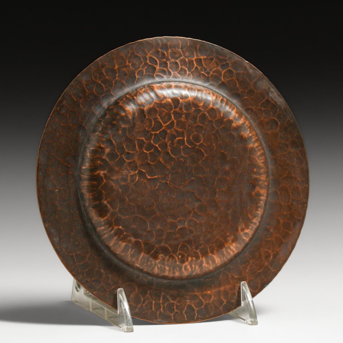 Early Roycroft Hammered Copper Tray c1915. Signed with earlier mark. Excellent new patina. 5.75"d