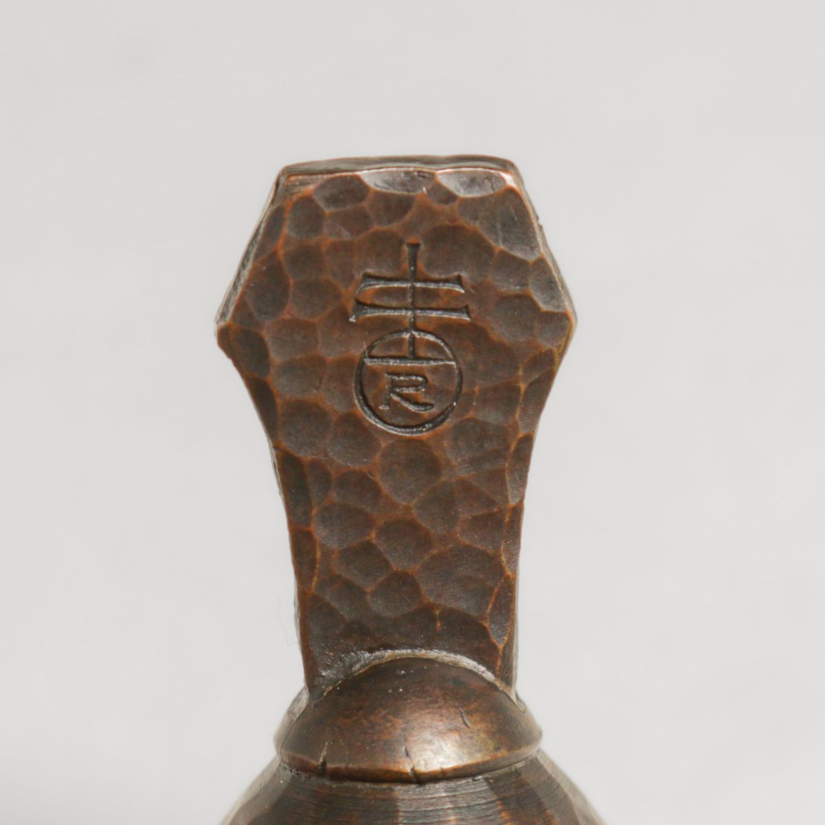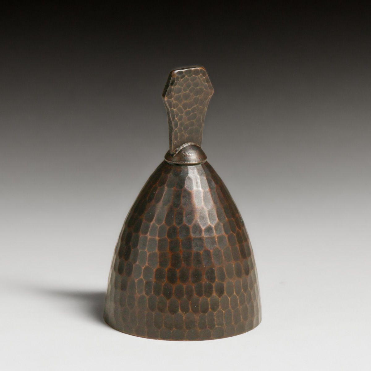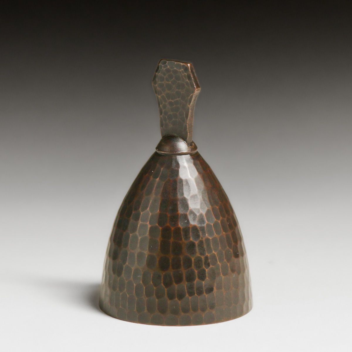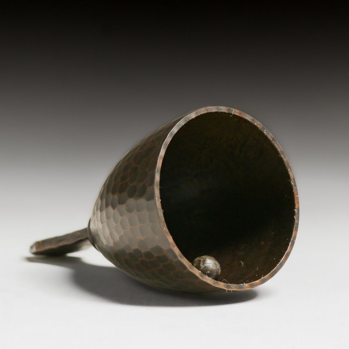 Roycroft Hammered Copper Dinner Bell c1920s. Signed. Excellent original patina. 2.75"h x 1.75"d.