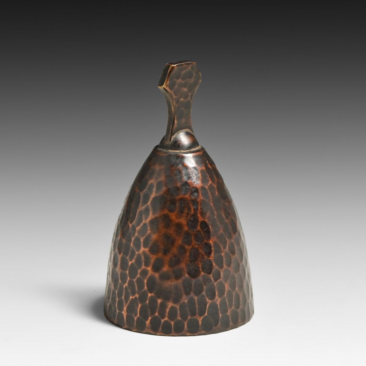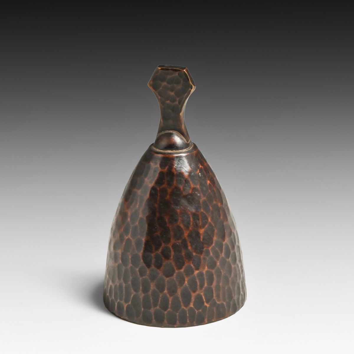 Roycroft Hammered Copper Dinner Bell c1920s. Unsigned. Excellent new patina. 3"h x 1.75"d