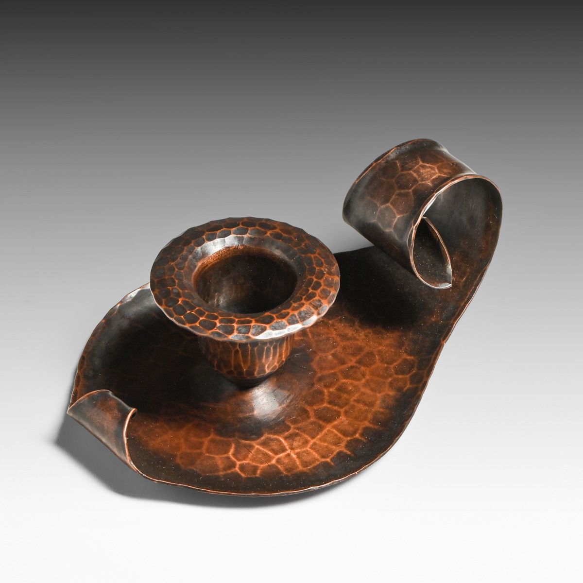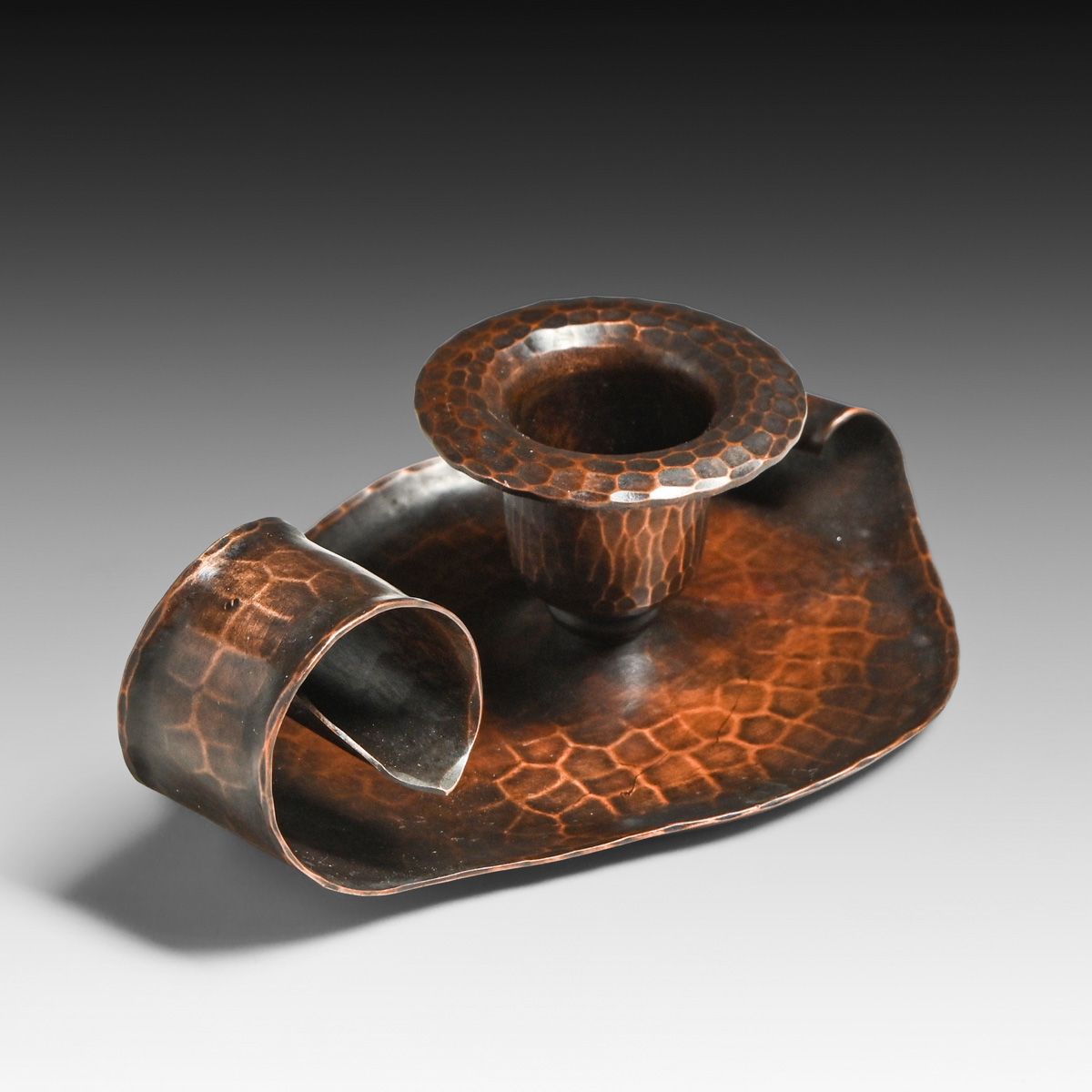 - Roycroft Hammered Copper One-Handle Candlestick c1920s