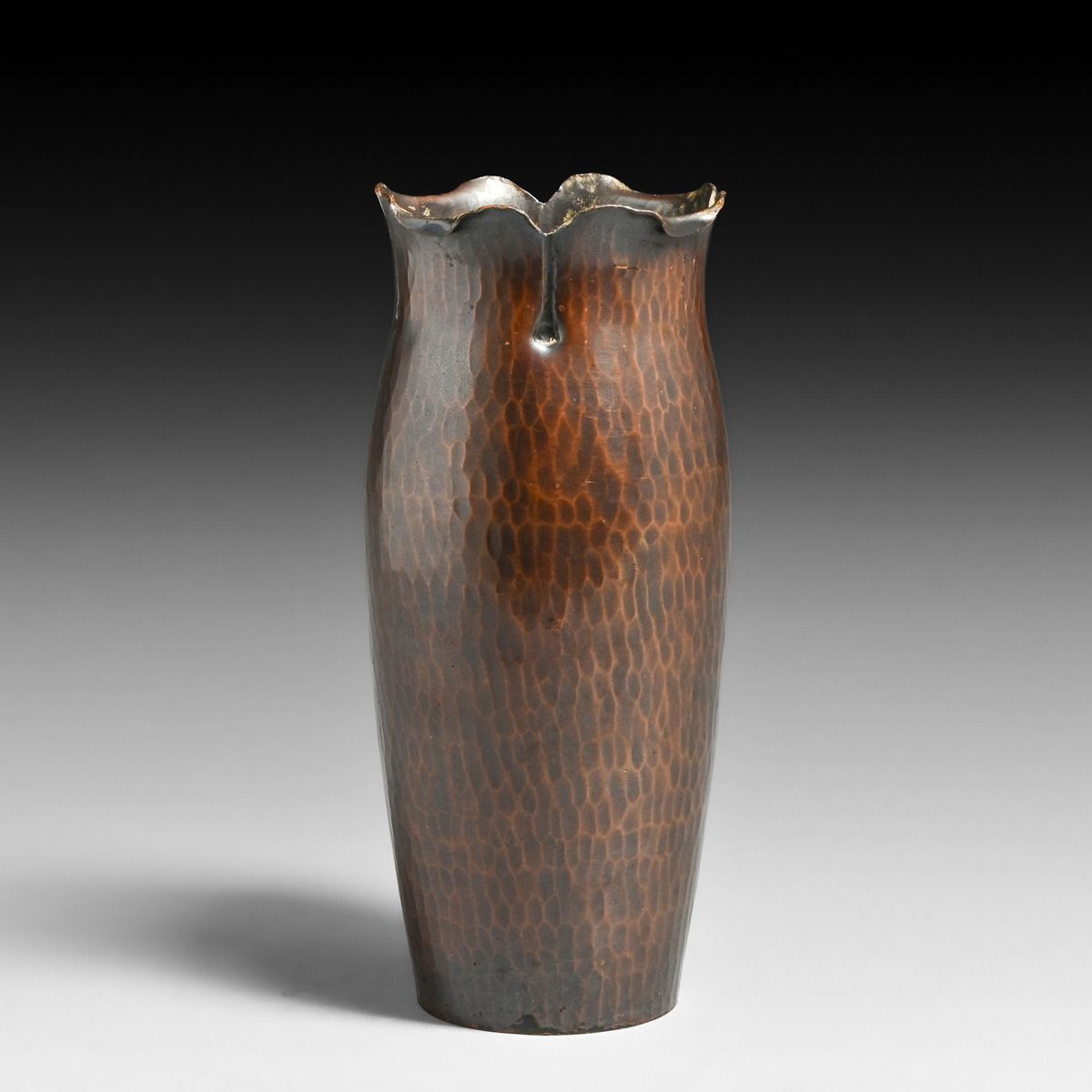 - Roycroft Hammered Copper Ruffled Rim Vase c1920s