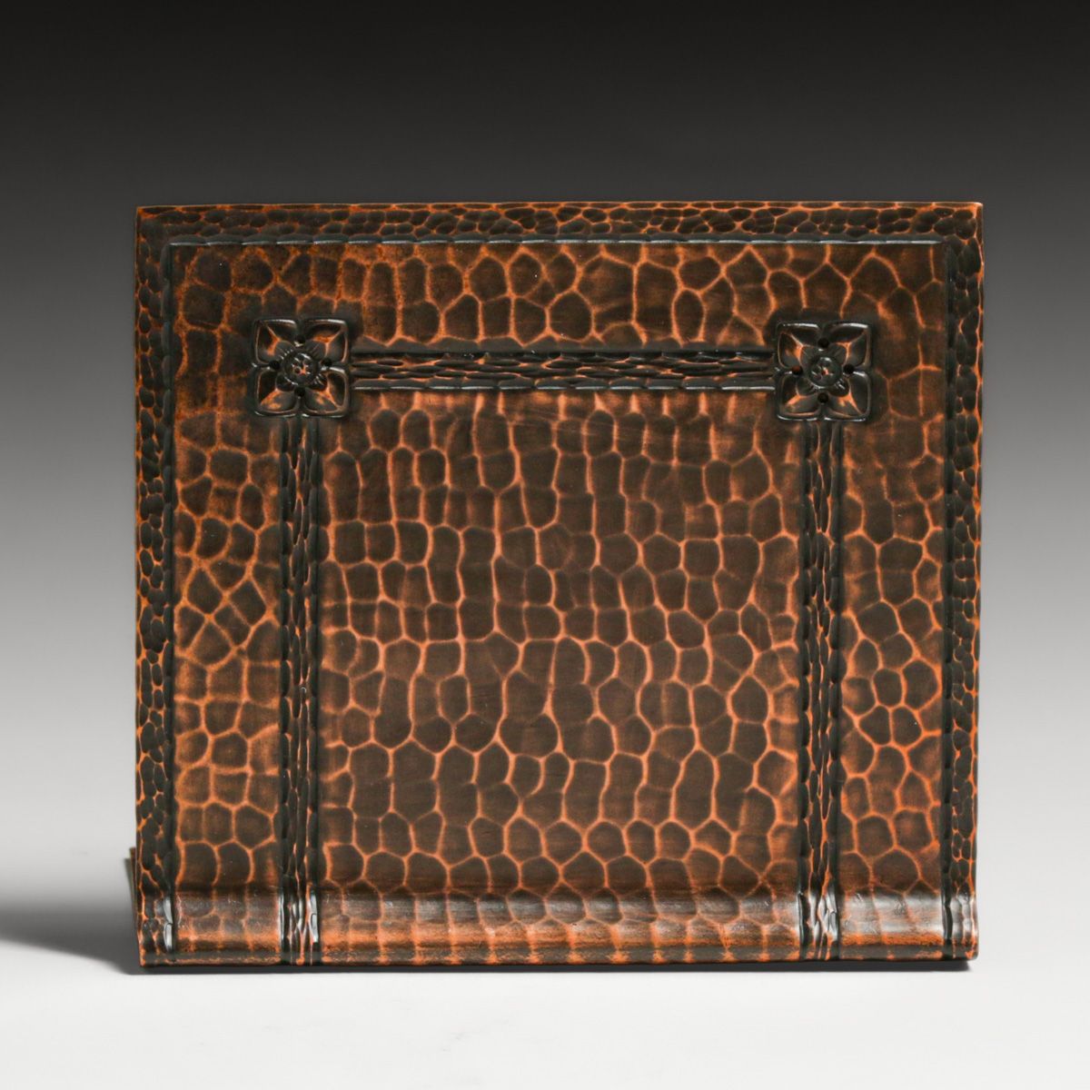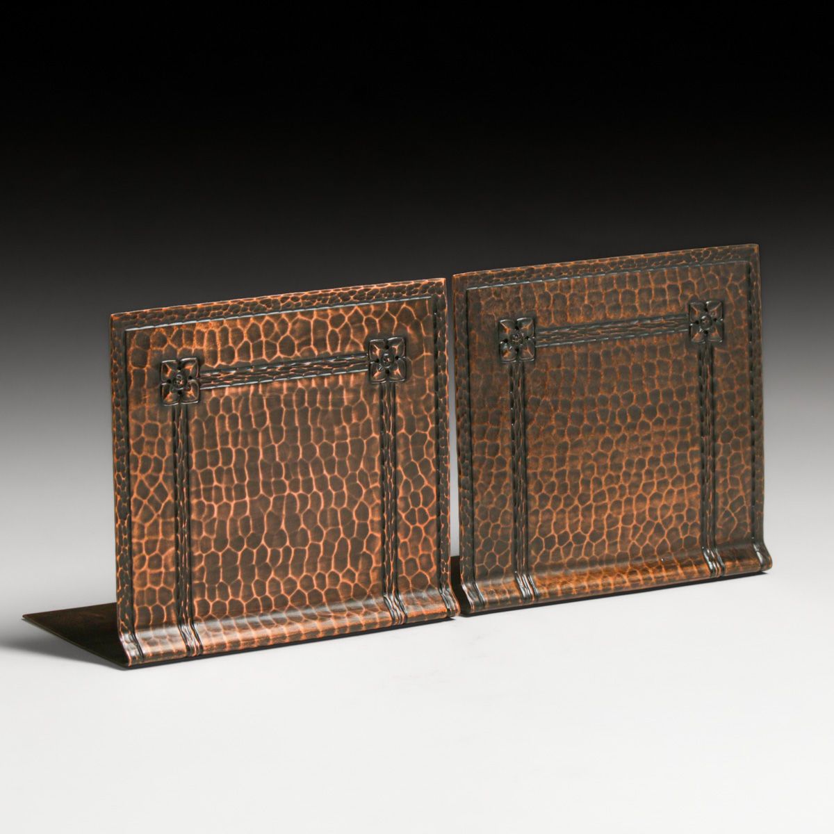 - Roycroft Hammered Copper Square Flower Bookends c1920s