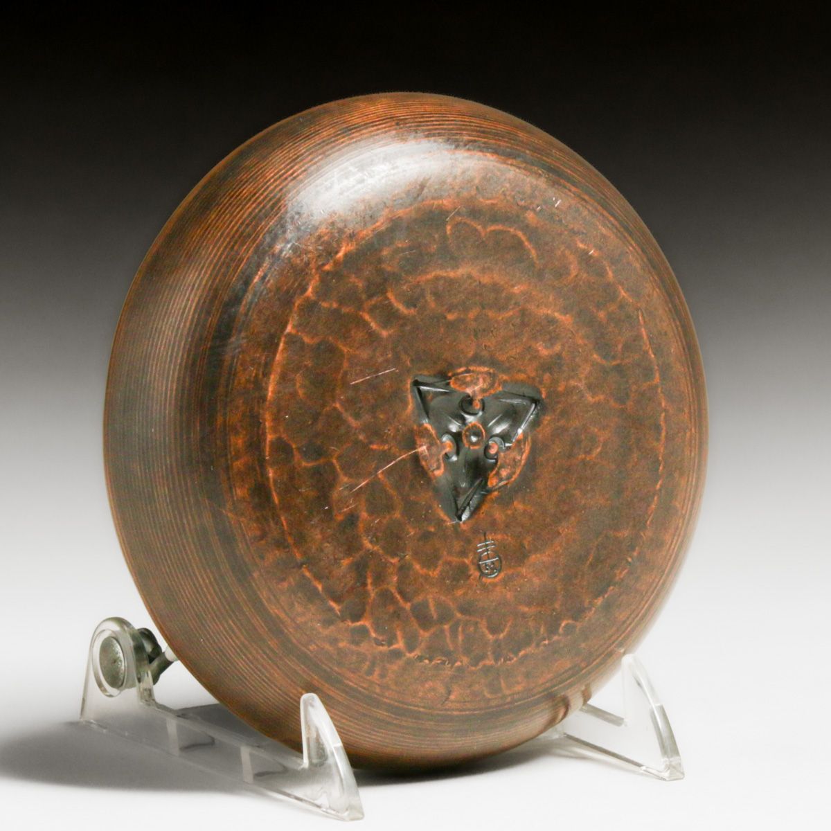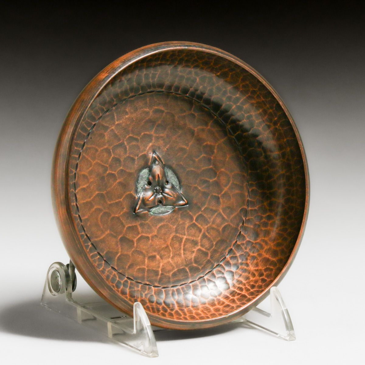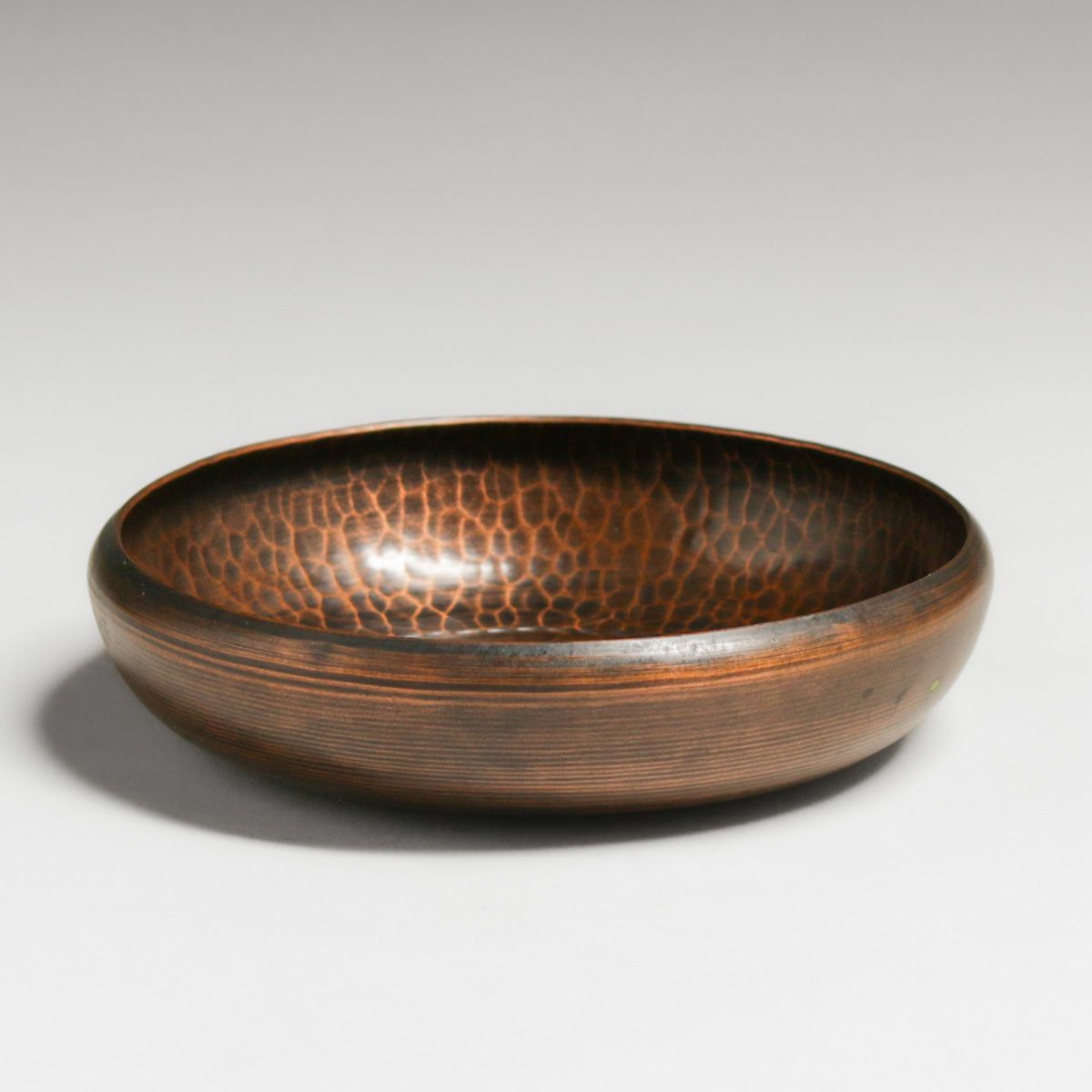 Roycroft Hammered Copper Trefoil Bowl c1920s. Signed. Excellent new patina. 4.75"d x 1"h.