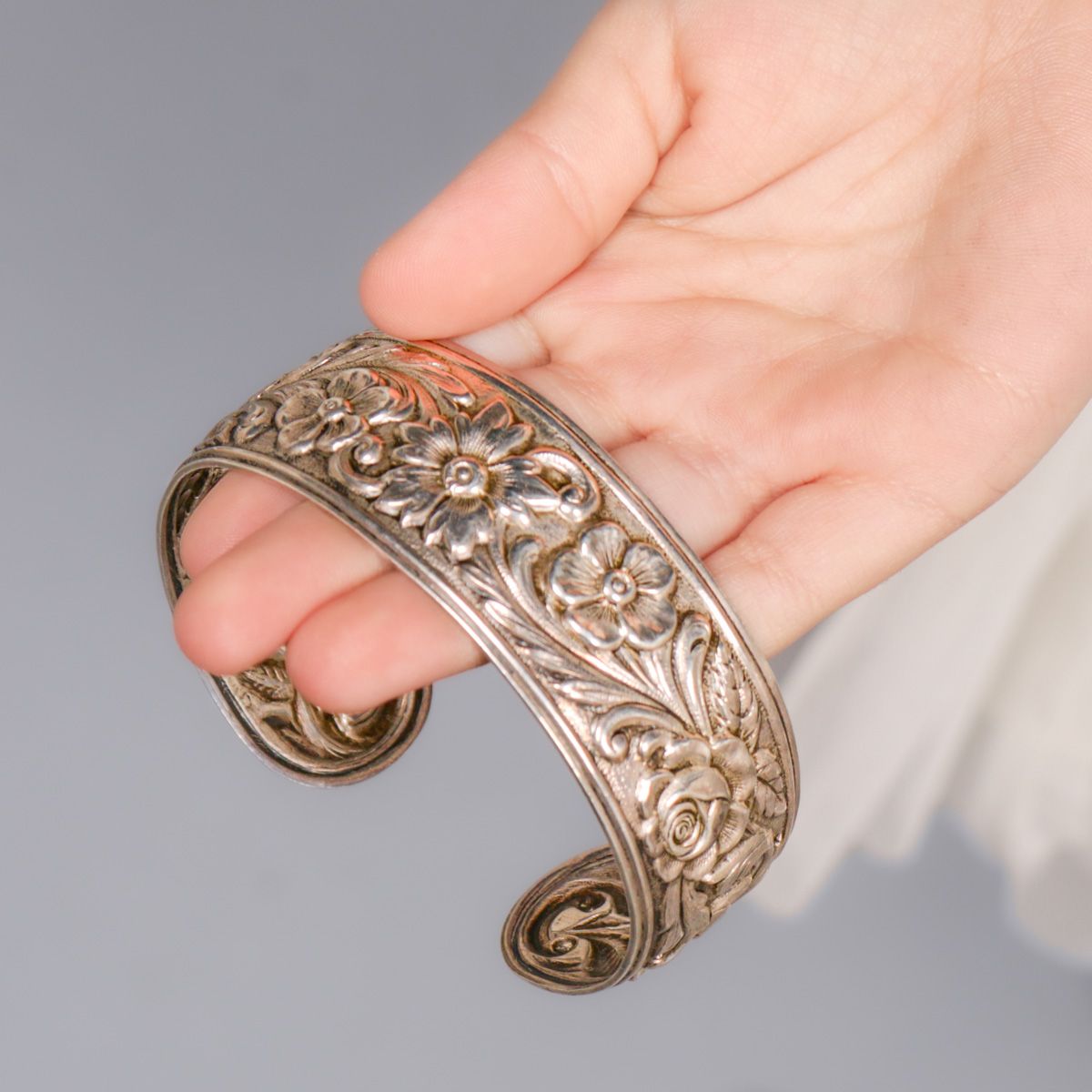 S. Kirk & Sons - Baltimore Sterling Silver Repousse Bracelet c1920s. Signed. 2.25"h x 2.5"w 1"d