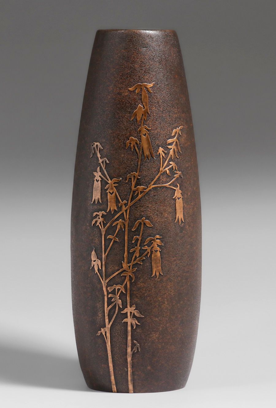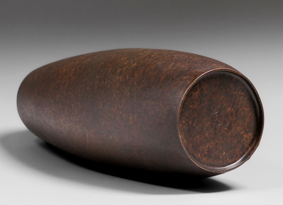 Silvercrest #2039 Brass Overlay Vase c1920s. Signed. Excellent new patina. 13”h x 5”d SOLD