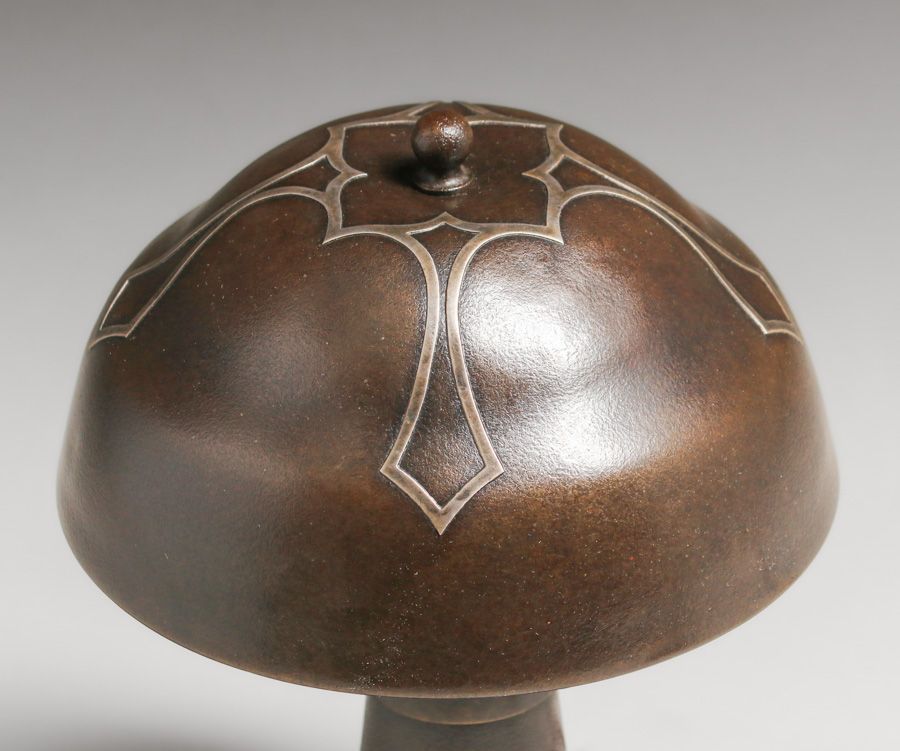 Silvercrest Sterling on Bronze Overlay Lamp c1920. Signed. Excellent new patina. 8.5"h x 6"d