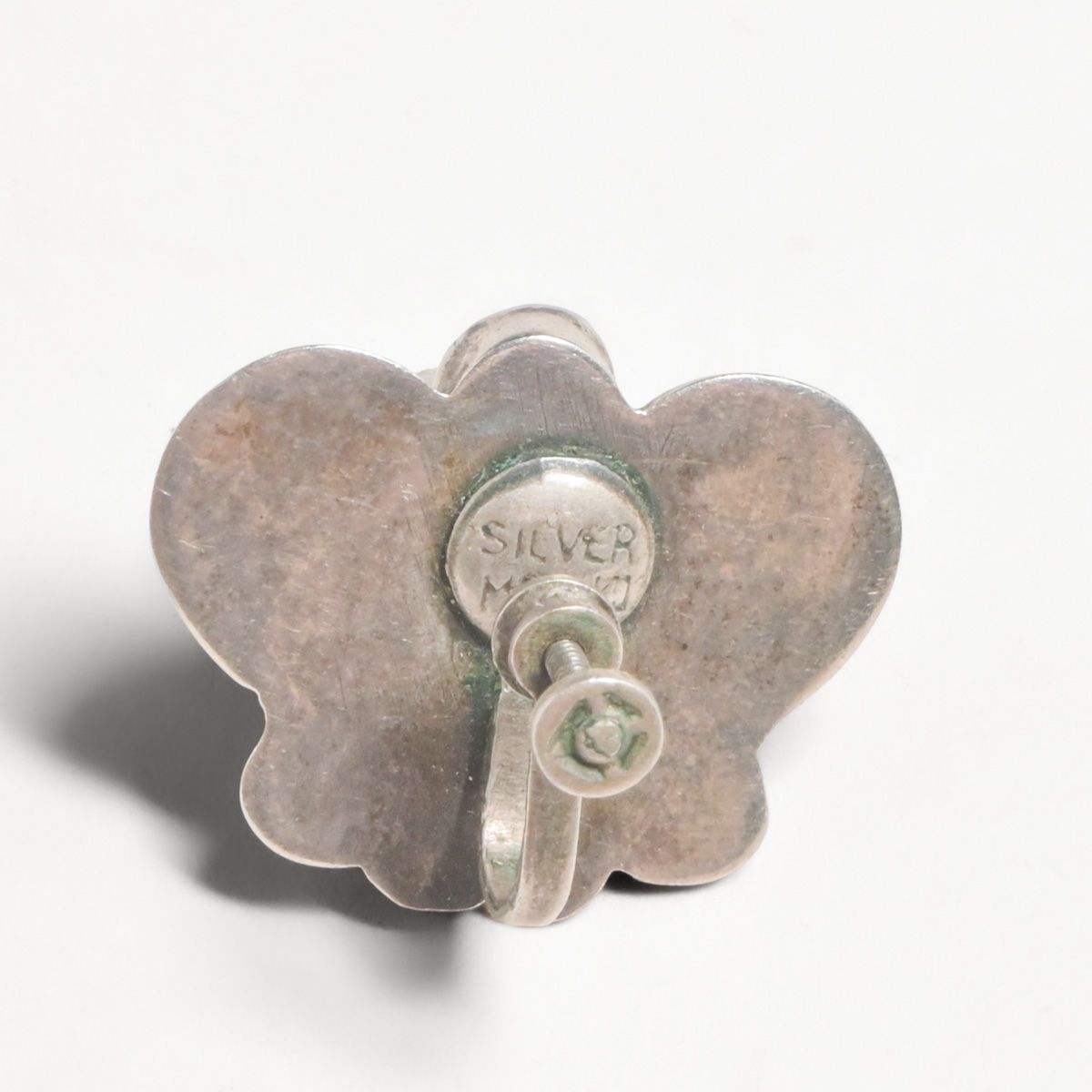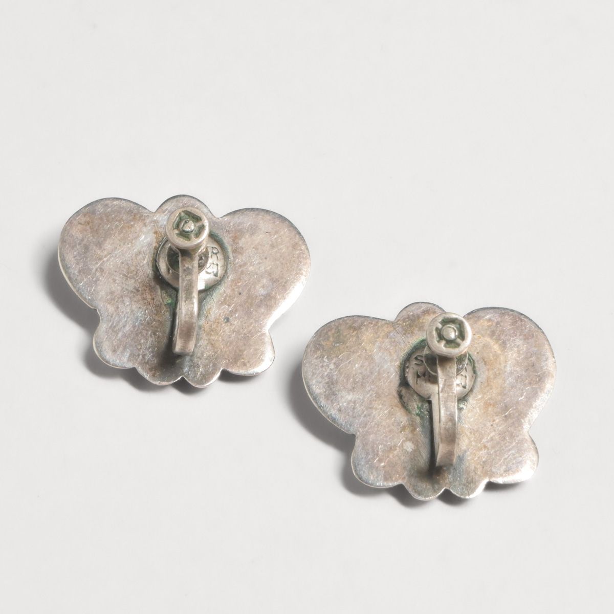 Vintage Mexican Sterling Silver & Green Onyx Earrings c1940s. Marked "Sterling Mexico", otherwise unsigned. .75"h x 1"w