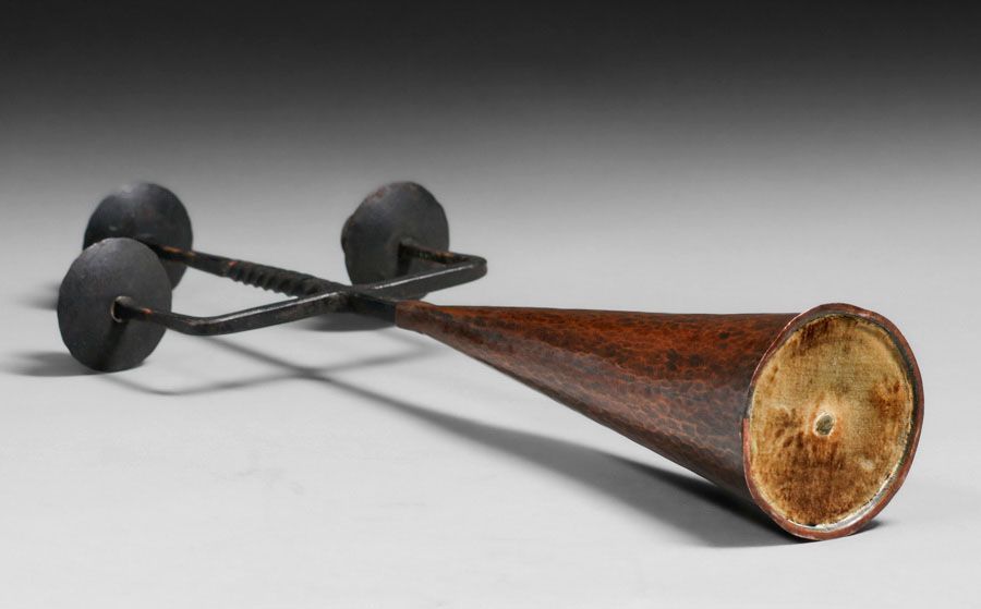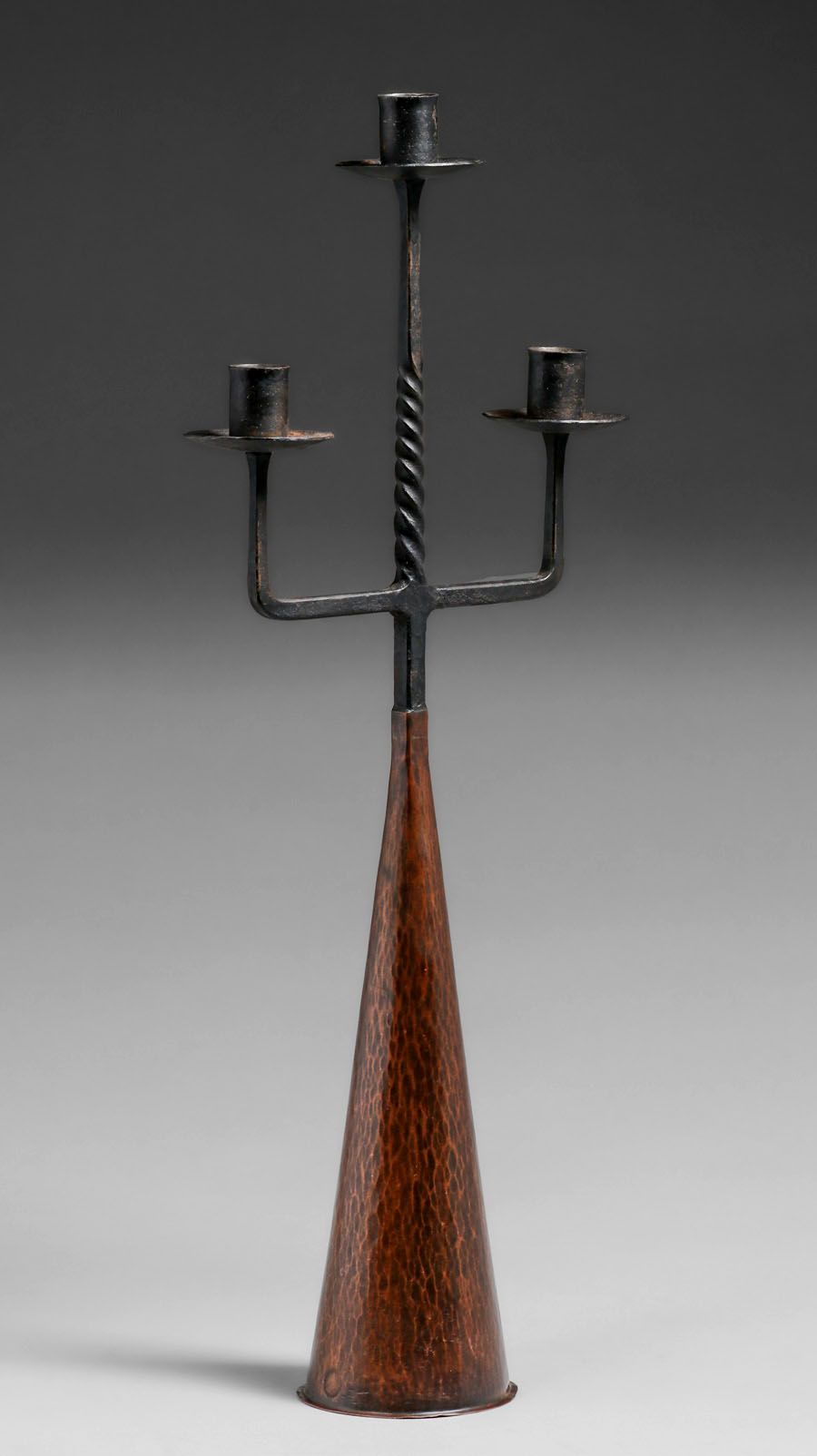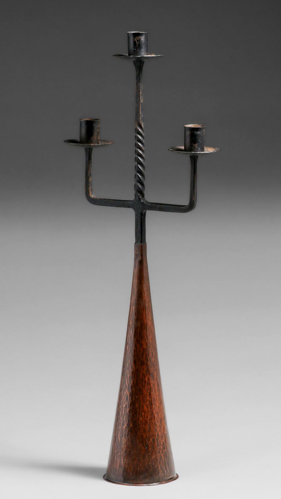 Taidetakomo Hakkarainen – Finnish Artist Modernist Candlestick c1930s. Signed. Color added to original patina. 19.5″h x 8″w