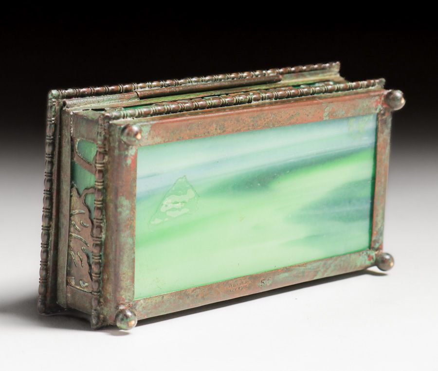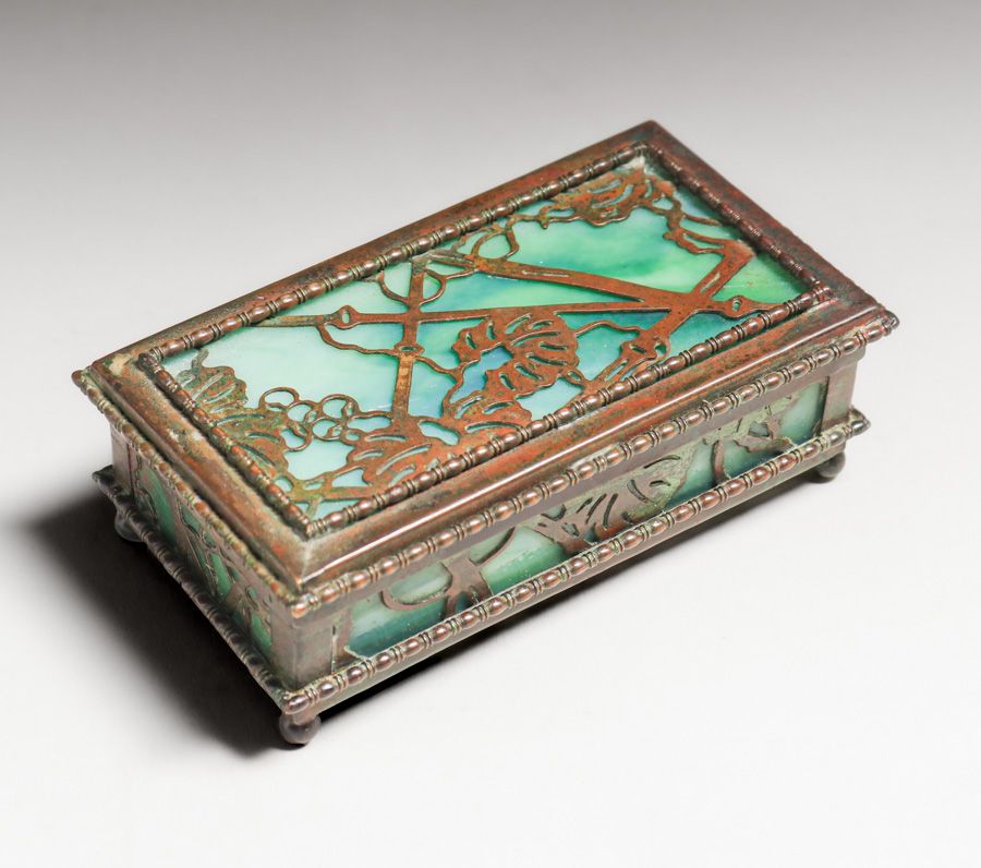- Tiffany Studios #55 Grapevine Overlay Stamp Box c1910