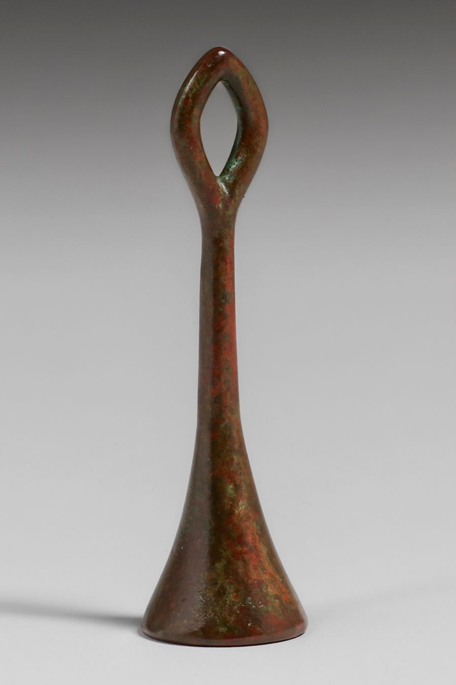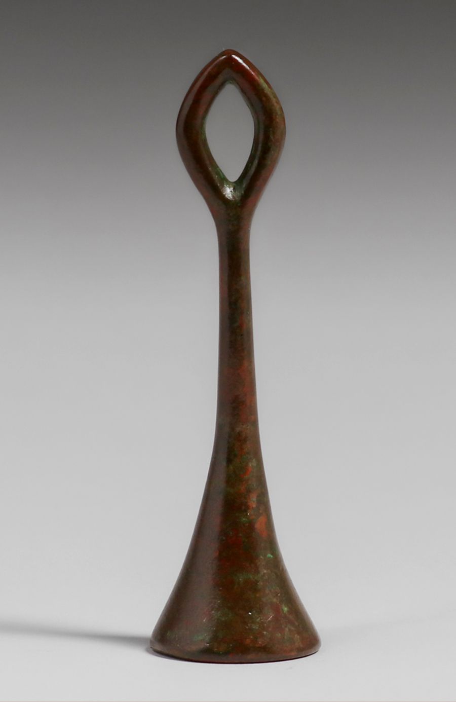 Tiffany Studios Bronze Candle Snuffer c1910s. Unsigned. Excellent original patina. 4h x 1 1/8d inches SOLD