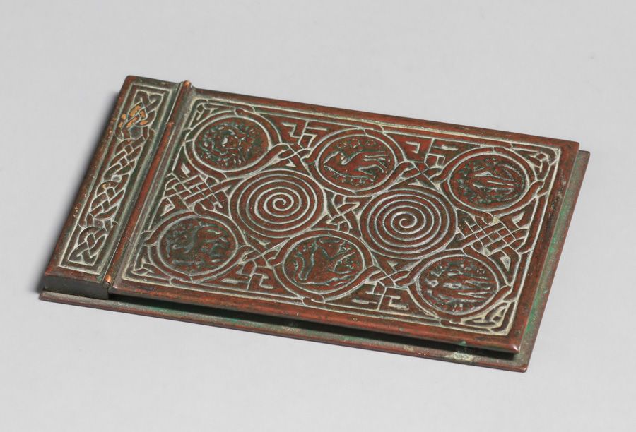 Tiffany Studios Bronze Zodiac Paper Pad Holder c1910. Signed. Excellent original patina. 7 5/8" x 4.75"w SOLD