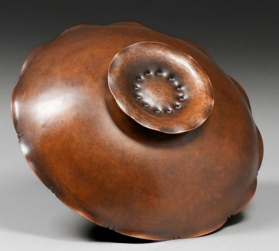 - Walter Jennings Hammered Copper Fruit Bowl c1910s