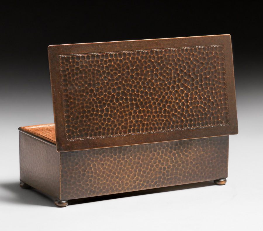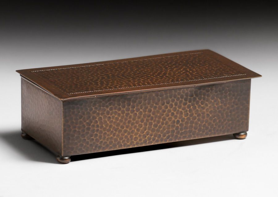 WMF - German #47 Hammered Brass Box c1905. Signed. Excellent new patina. 7.75"w x 3.75"d x 2.5"h SOLD