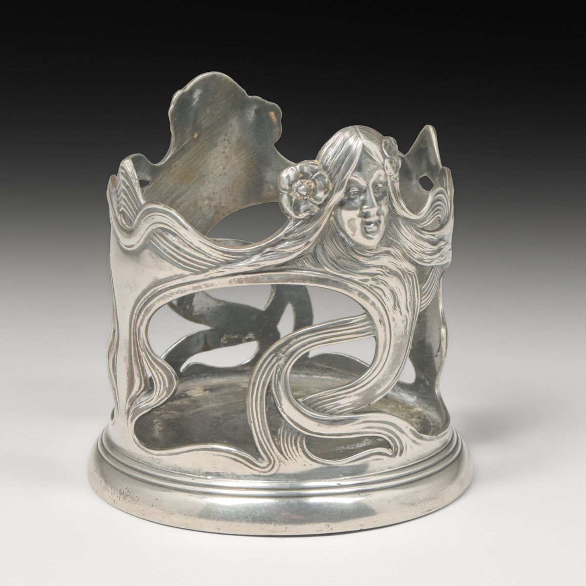 WMF - German Art Nouveau Wine Bottle Holder c1905. Signed. Excellent condition. 4.25"h x 4.25"d