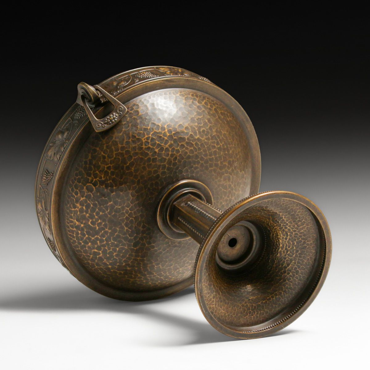 - WMF - German Grapevine Repousse Hammered Brass Two-Handled Compote c1905