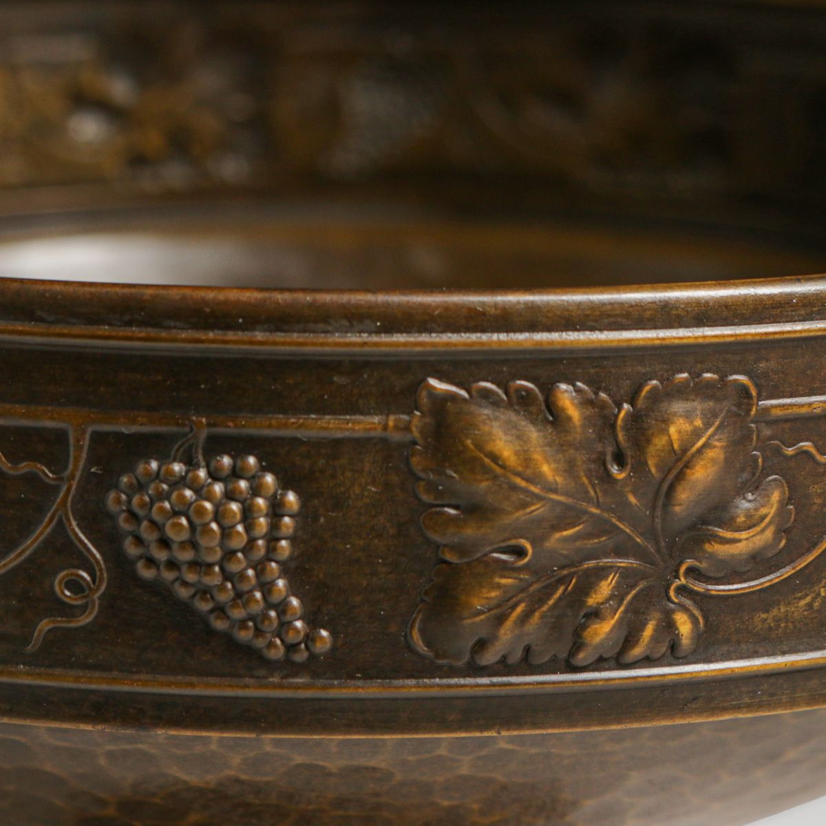 WMF - German Grapevine Repousse Hammered Brass Two-Handled Compote c1905. Signed. Excellent new patina.