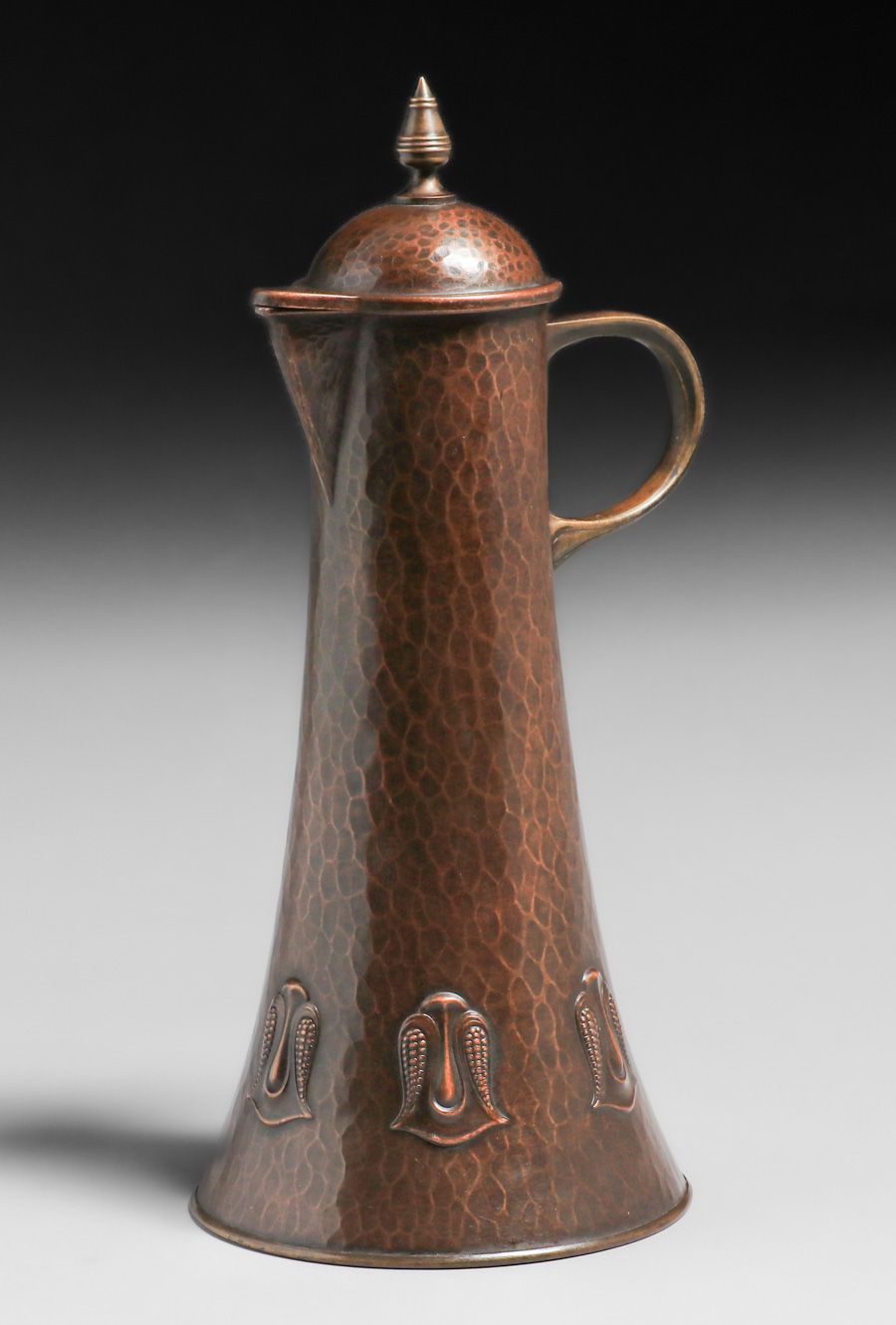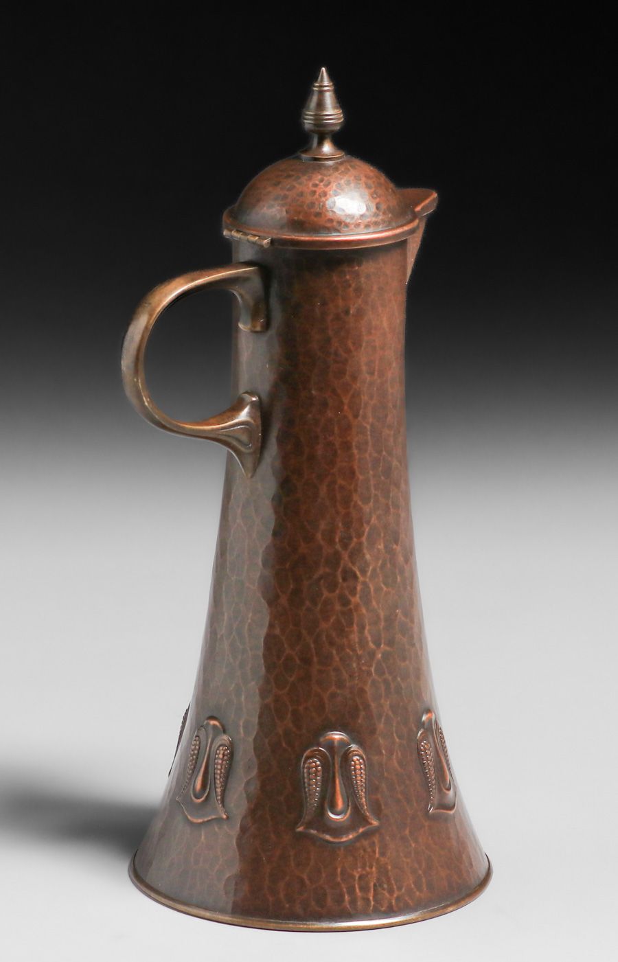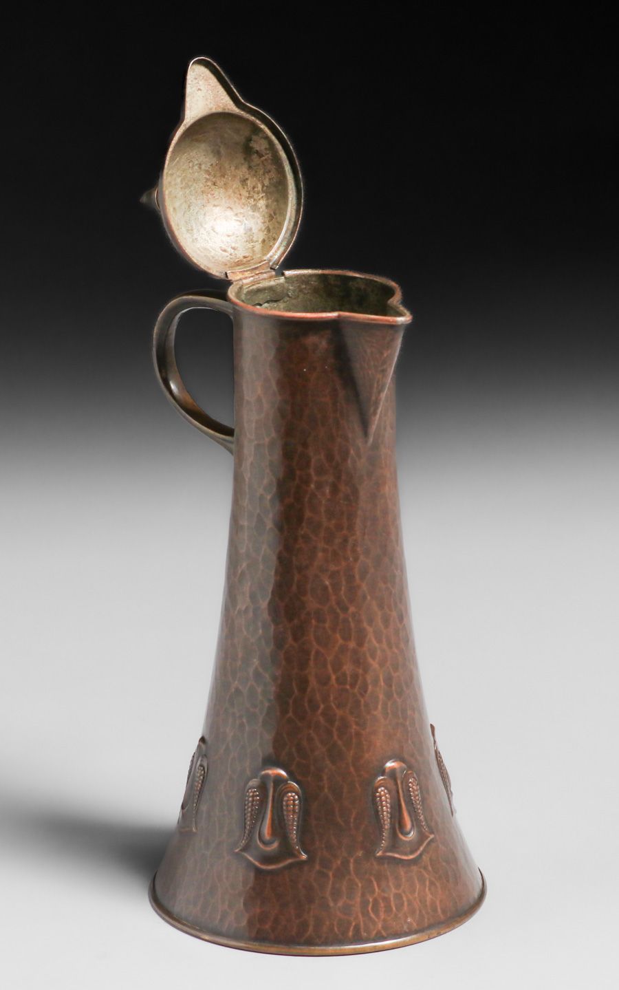 - WMF - German Hammered Copper & Brass Pitcher c1905
