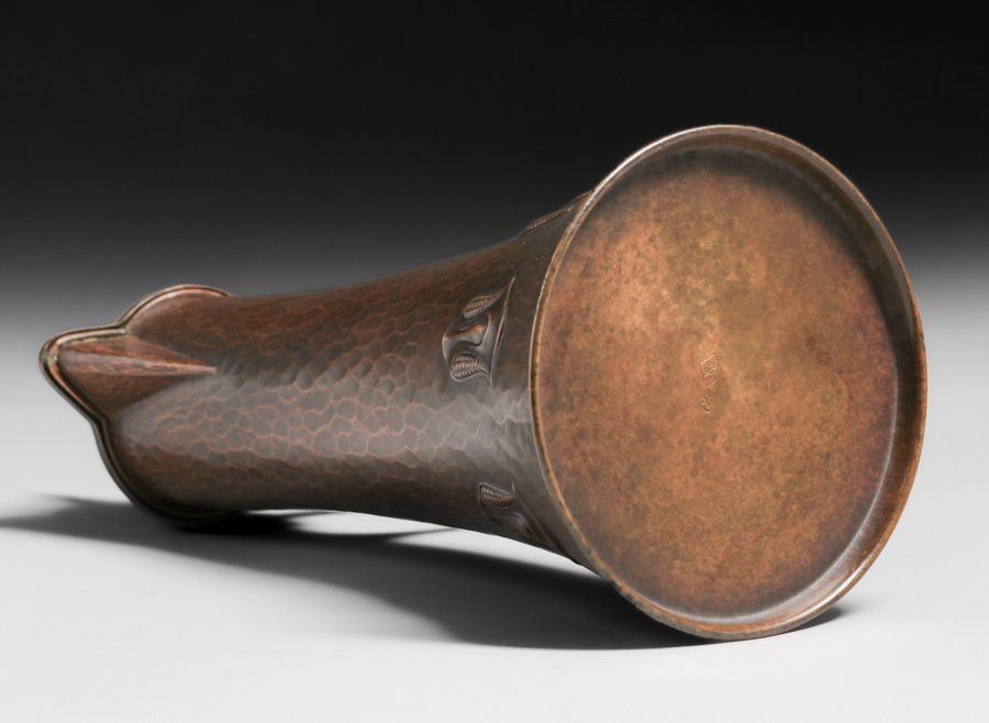 WMF - German Hammered Copper & Brass Pitcher c1905. Signed. Excellent new patina. 11"h x 4.5"d SOLD